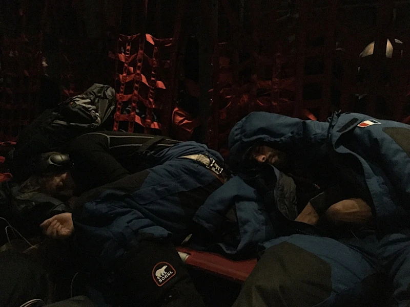 소문은 들었지만 수송기를 타자 마자 황당함에 입이 벌어지고 말았습니다. 당초 기대는 하지 않았지만 이런 비행기를 타고 7시간 비행을 한다니요. 공군을 다녀오신 분은 알겠지만 수송기는 붉은 끈으로 등받이를 만든 간이 의자가 양쪽으로 평행하게 설치되어 탑승자가 서로 마주 보며 앉게 되어 시선을 둘 곳도 마땅치 않습니다. 옆자리 사람과의 간격도 여유가 없어 밀착 착석을 하게 되니 상상초월 불편이 이만저만이 아니어서 순간 쿤타킨테의 노예운반선이 떠올랐습니다. 몇 시간 우리는 그냥 화물이 된 것입니다. 더 놀라운 것은 탑승전에 주는 귀마개를 받았는데 무슨 용도인지 몰랐다 이륙하고 고마원 존재임을 실감했습니다. 엔진 소리와 프로펠러 돌아가는 소음은 심장을 울리는 저음의 소리에다 모든 전자기기의 소리를 파괴하는 위력을 지닌 엄청난 소리였습니다. 영화도 볼 수 없고, 음악을 들을 수 없이 지루한 7시간의 비행을 하는 것입니다. 마주 본 좌석 배치로 인해 다리를 펼 수 없어 오는 무릎관절 고통과 소리에 남들보다 민감한 나로서는 비행 내내 정신이 혼미하였습니다. 남극행 비행 후에는 출장 시 절대 이코노믹 좌석에 불편해하지 않을 테고 어느 항로 건 겸허한 자세로 비행기를 타리라 다짐을 했고 실제 그 이후 이코나믹석이 불편하지 않았습니다.