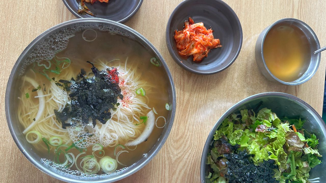 4분 전 우리 식탁의 모습은 이랬다. 그분은 어렵게 초장량을 황금비율로 맞추려 눈대중하고 있었고, 앞쪽 남자분은 그래도 양심은 조금 있었던지 다 비벼질 때까지 젓가락 잡고 기다리고 있었다.