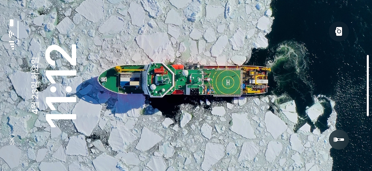 15년 동안 10월에 보내고 6개월 만에 맞이하는 아라온호를 보는 감정은 짠합니다. 앞쪽 코는 얼음과 싸운 훈장처럼 깨져 있으며, 점점 노후화에 부식된 빨간 녹슨 철판들은 여러 손길로 보듬어 줄 손길을 기다립니다.
