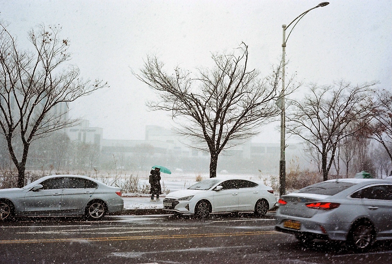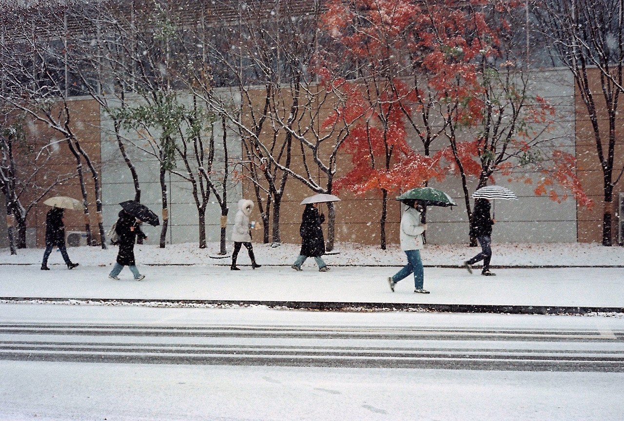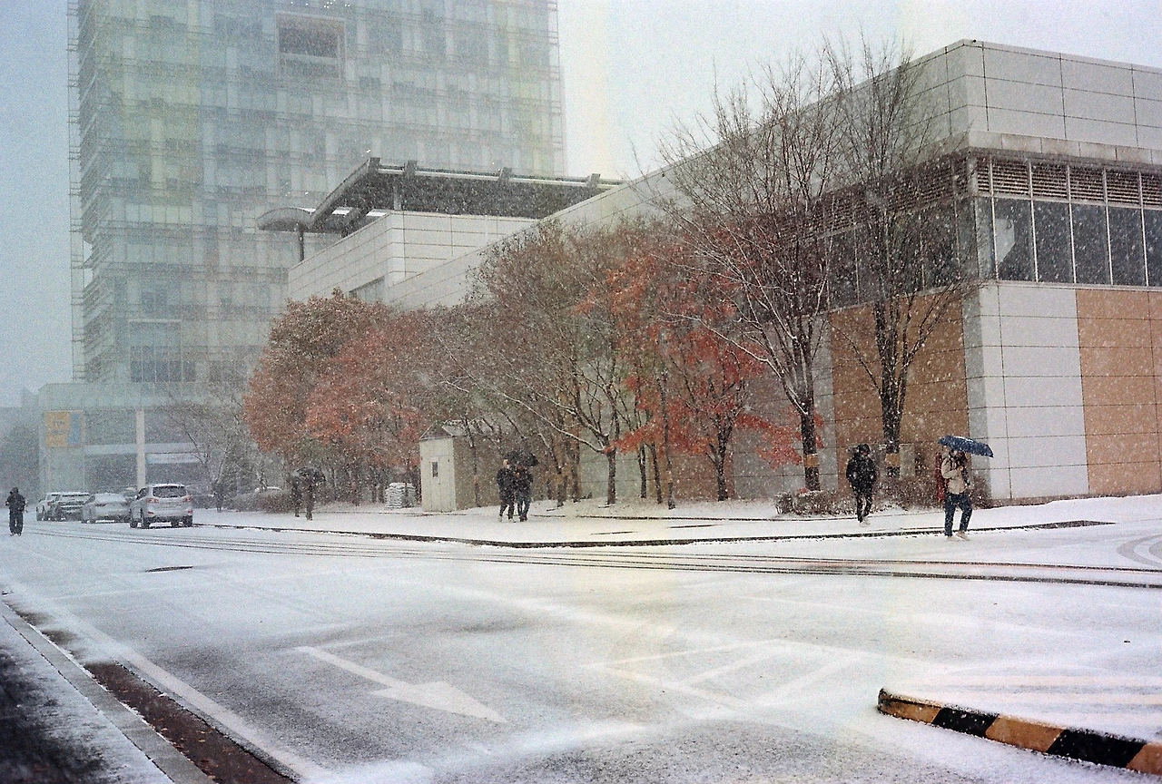 한 손에 우산을 든 총총 출근길의 사람들은 버겁게만 보이지 않았다. 첫눈이 주는 설렘이 일터로 가는 길의 불편함을 상쇄하였을 듯한 이유다.