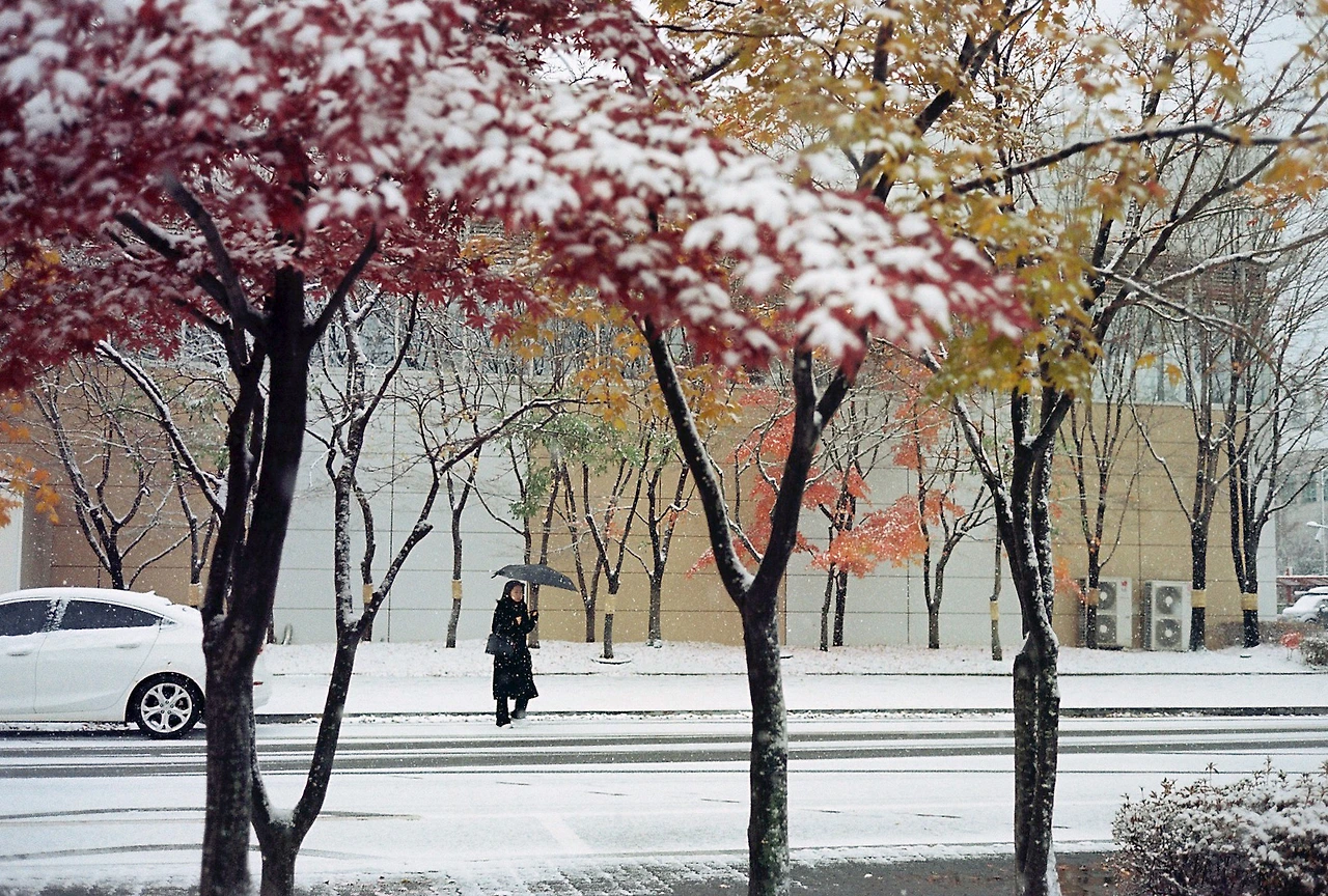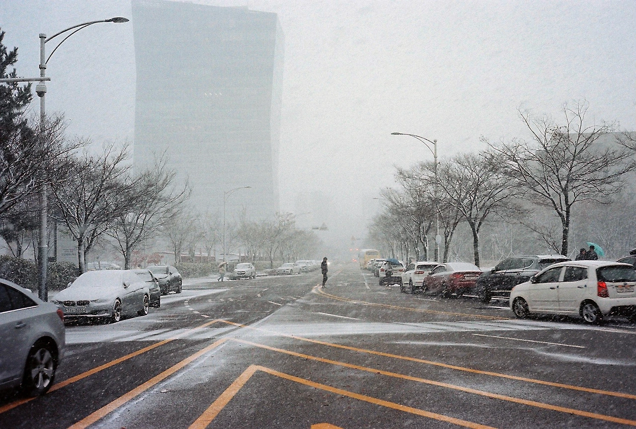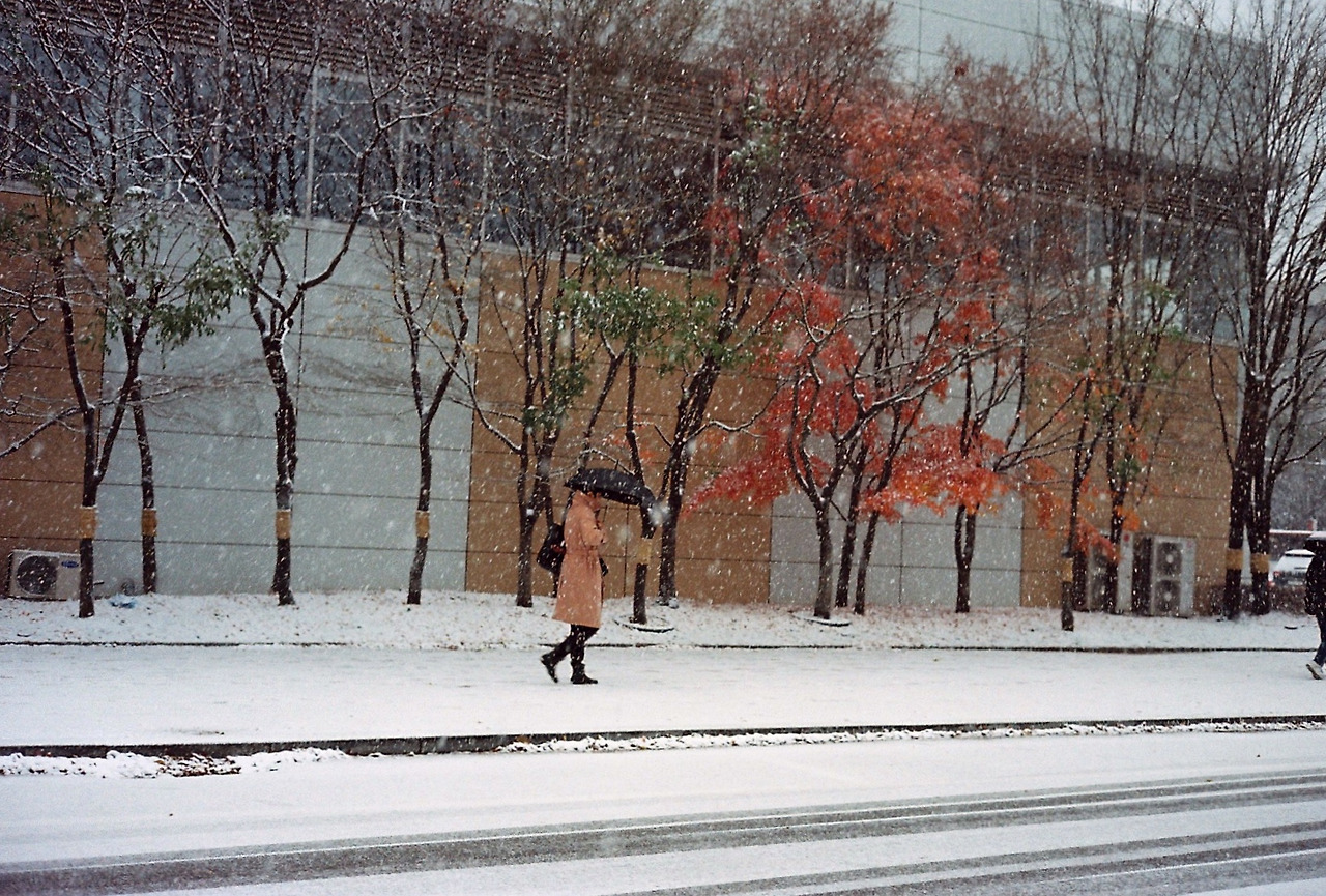 한 손에 우산을 든 총총 출근길의 사람들은 버겁게만 보이지 않았다. 첫눈이 주는 설렘이 일터로 가는 길의 불편함을 상쇄하였을 듯한 이유다.