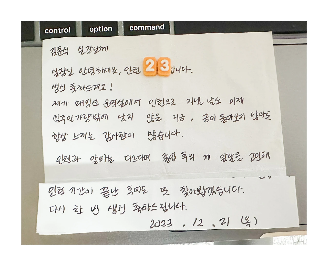 옆 부서에서는 오래전 인턴이 찾아왔다 하니까 그런 인성이 어딨냐고 폭풍 칭찬을 해줍니다. 그러죠. 단지 인턴 4개월에 다시 찾아온다는 약속을 지키기가 쉽지는 않을 것입니다. 잘해 준 기억도 없는데 말입니다.