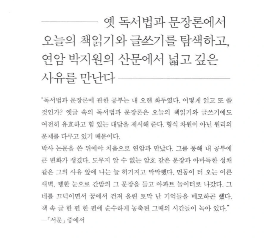["책읽기는 지식을 쌓는 과정이 아니라, 흩어진 마음을 한데 모으고 내 삶의 결을 다스리는 수행이다."]
