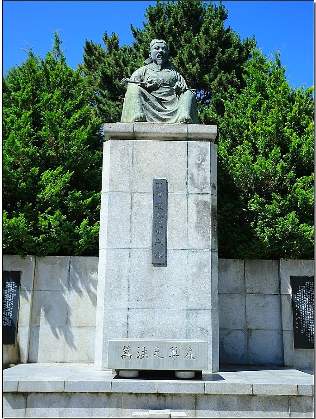 동백섬 정상부에 올랐다. 이 곳에는 해운대와 관련있는 해운 최치원의 거대한 동상이 세워져 있고, 동상 주변에는 선생의 일대기를 기록한 약전과 함께, 그의 대표적인 한시인 '추야우중(秋夜雨中)' 등이 새겨진 시비가 있어 선생의 문학적 세계를 엿볼 수 있었다.