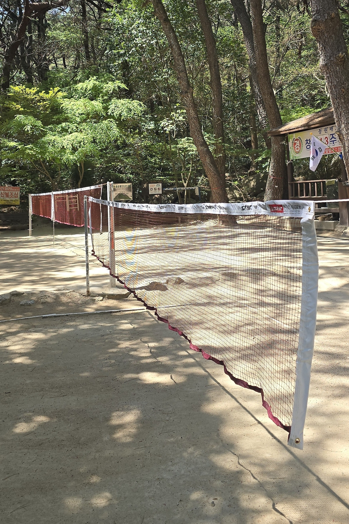 세번째는 숲 속에 있는 배드민턴장, 주말 낮에는 배드민턴 클럽 회원들이 열정적으로 운동하는 곳이지만, 오늘은 평일이라서 조용하다. 아무도 없는 코트를 가볍게 달려 본다. 테니스를 20년 정도 하면서 구기 종목에는 큰 관심이 있어 기회가 되면 공기 좋은 숲 속 안 배드민턴 클럽에 가입하고 운동하고 싶은 마음을 살짝 가져 보았다.