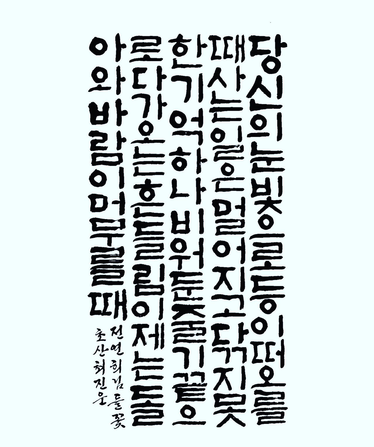 현재, 나는 한글 서예의 대가(놀빛 김명숙선생님)에게서 한글(판본체, 민체, 봉서)를 배우고, 부산에 있는 서예대회(전국서도민전, 부산서예대전, 청남휘호대회)와 전국대회(대한민국서예대전, 국전)에 적극 참여하면서 화요일, 목요일 열심히 한글 공부하면서 나의 서예의 영역을 확장하고 있고, 열심히 배워서 기회가 되면 한국화, 서각, 전각, 도자기에도 배움의 영역을 넓히고 싶다는 마음을 늘 품고 있다. "내가 쓴 글을 붓으로 화선지에 쓰고, 어울리는 그림을 그리고, 내가 새긴 전각(붉은 도장)으로 내 작품을 알리는 그 날까지 멈추지 않고 나아가리라"