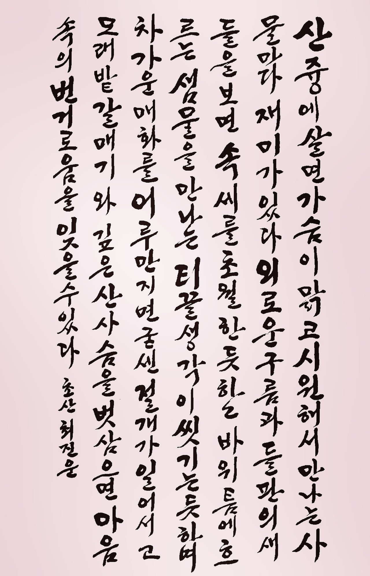 저의 취미이자, 서서히 제 2의 직업이 된 서예, 캘리와 건강한 몸으로 건강한 글, 작품을 만들기 위한 저만의 작은 노력인 자연과 벗하는 삶(걷기)을, 부산 근교의 산, 절, 바다를 걷는 여행을 사진과 함께 공유하려고 합니다.