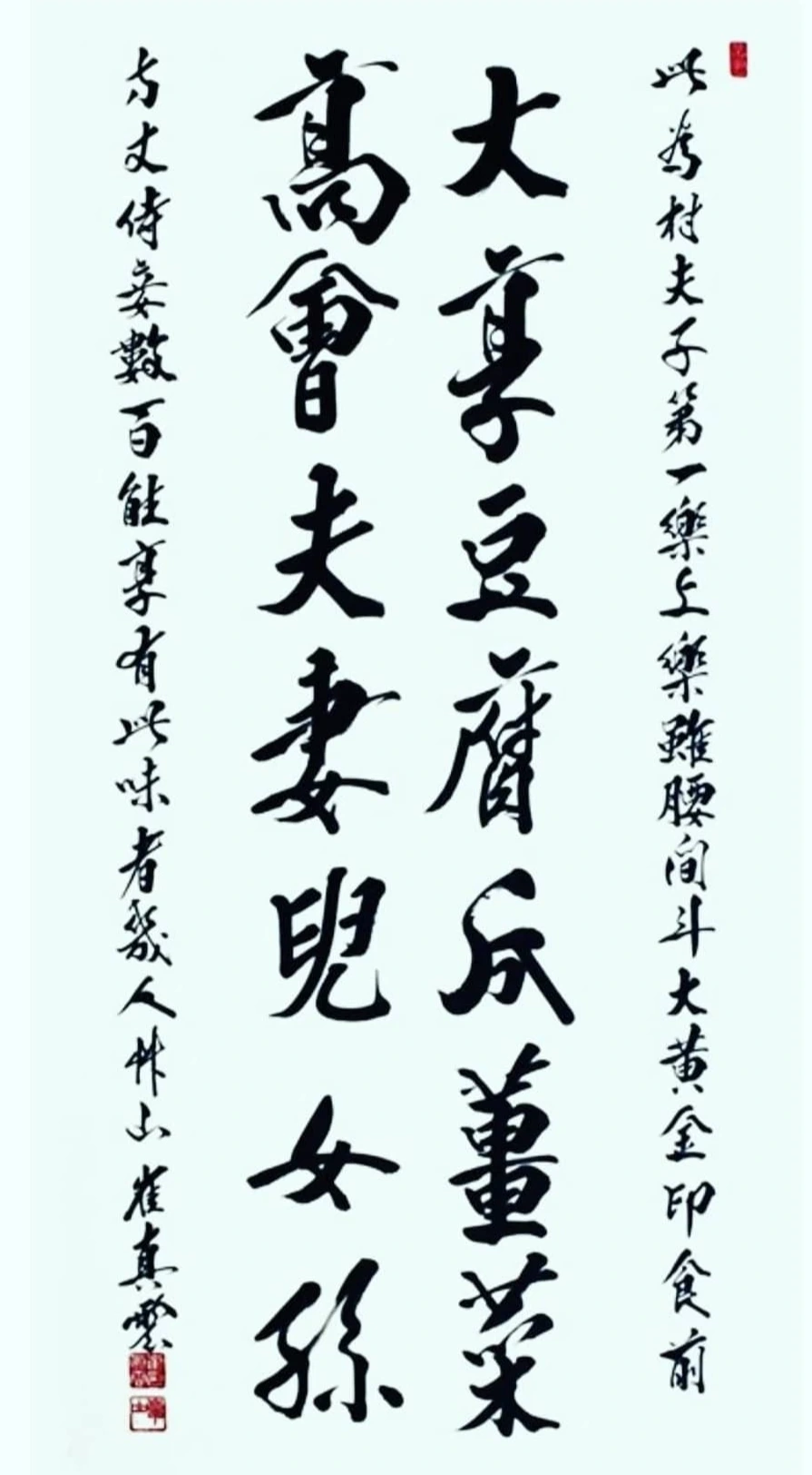 7언시로 우리 인생의 평범한 가치를 극대화 시켜 놓고 선생의 감회를 작은 글씨(협서)로 옆에 서 놓습니다.