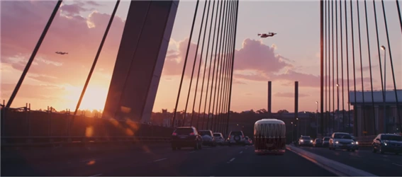 [2020년 CES에서 공개한 현기차그룹의 도심 모빌리티 모습(샌프란시스코 배경)]