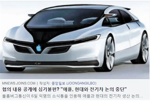 이 기사가 애플에서 흘려진 것이라면, 현기차가 지들 마음대로 되지 않을 것 같으니 협상 우위성을 가져가기 위해서 수작질하는 것으로 밖에 안 보인다.