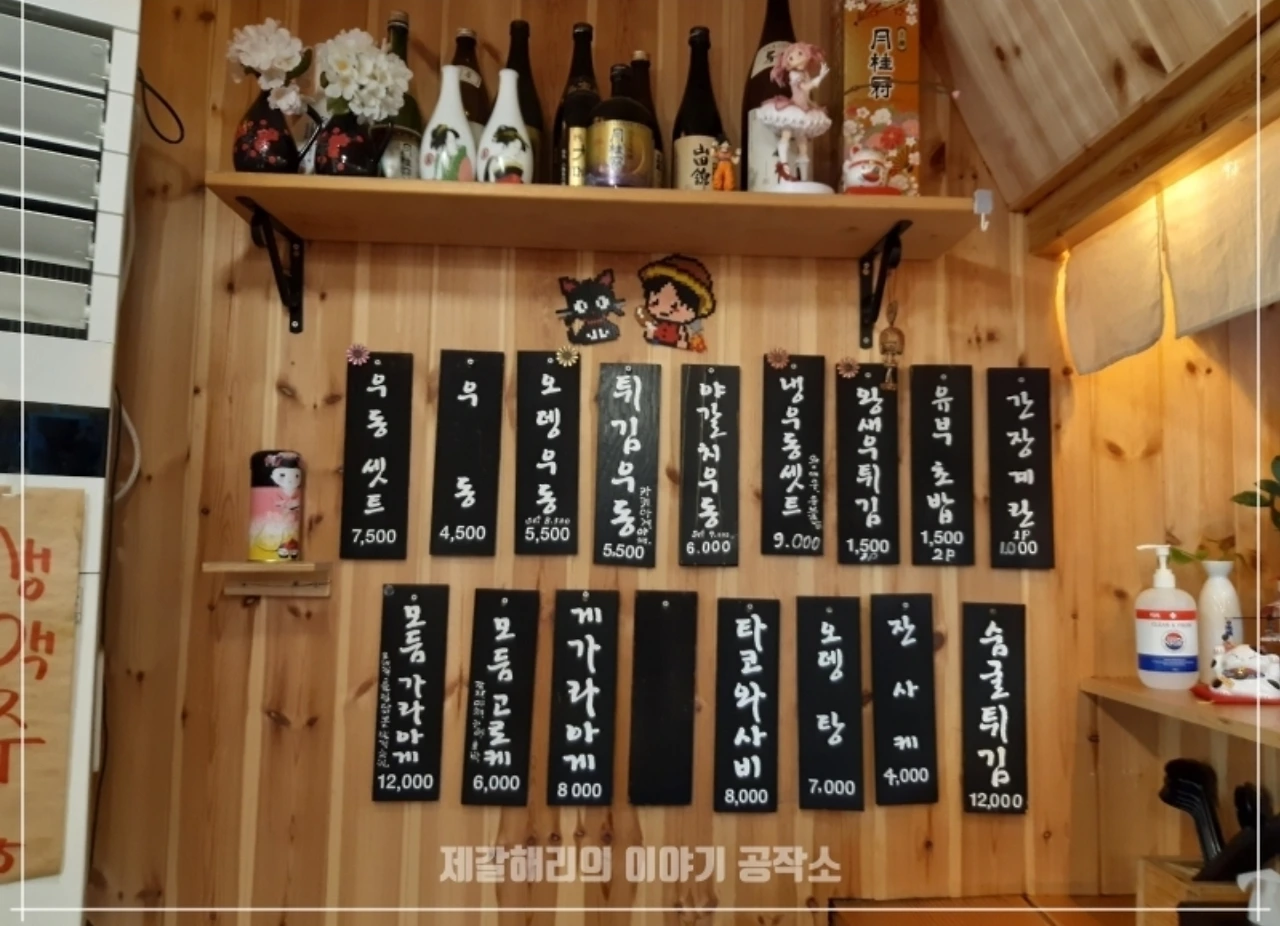그 외에도 기본 우동인 히카리 우동, 야갈치(야채 갈릭 치킨의 줄임말) 우동, 하야시 우동, 온메밀, 냉메밀 등의 우동과 메밀 종류의 메뉴들이 있고, 가라아게, 숨굴튀김, 연어 사시미, 타코와사비 같은 안주류 메뉴들도 있다. 나는 안주류의 음식들은 거의 다 먹어 보았는데, 모두 다 너무나 맛있어서 함께 마시던 아사히 맥주잔이 어느새 비워지기 일쑤였다.