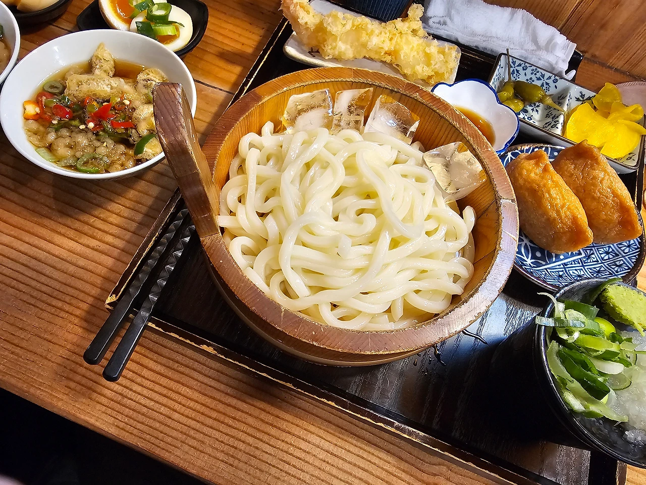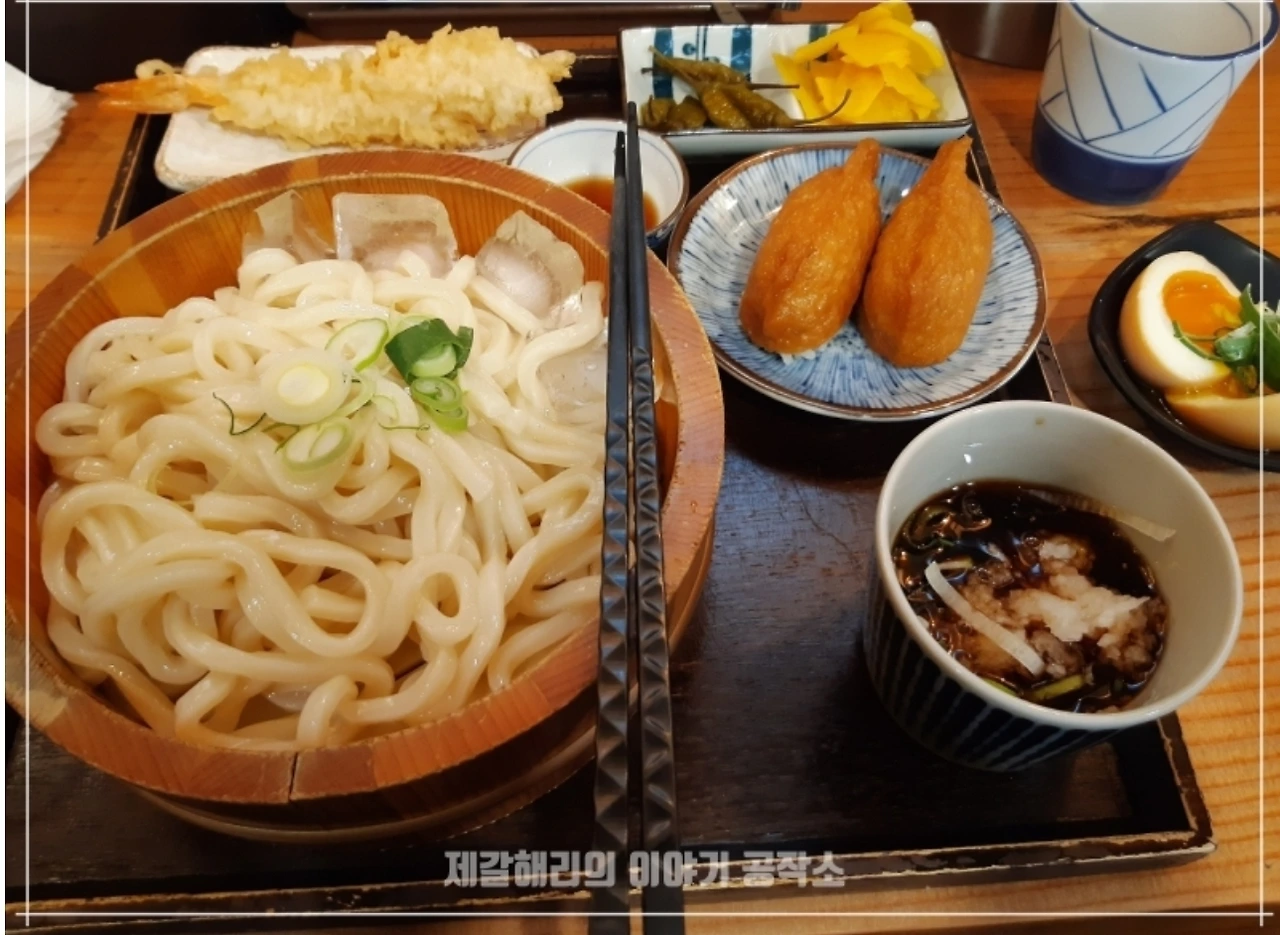 히카리 우동의 음식은 매우 다양하다. 나는 그중에서도 냉우동(자루 우동) 세트를 가장 좋아하는데, 찬 물에 헹궈낸 쫄깃쫄깃한 우동 면을 쯔유 간장 소스에 찍어 먹는 자루 우동과 달짝지근하면서도 담백하고 밥알을 씹는 식감이 있는 유부 초밥, 새하얀 튀김옷을 입어 빛깔부터 남다르고, 겉바속촉인 새우튀김으로 구성되어 있다. 추가로, 간장계란이 있는데, 짭조름한 맛에, 말랑말랑한 식감에, 노른자 반숙 상태가 잘 되어 있어 게 눈 감추듯 순식간에 먹게 되는, 정말 끝내주는 맛이다.