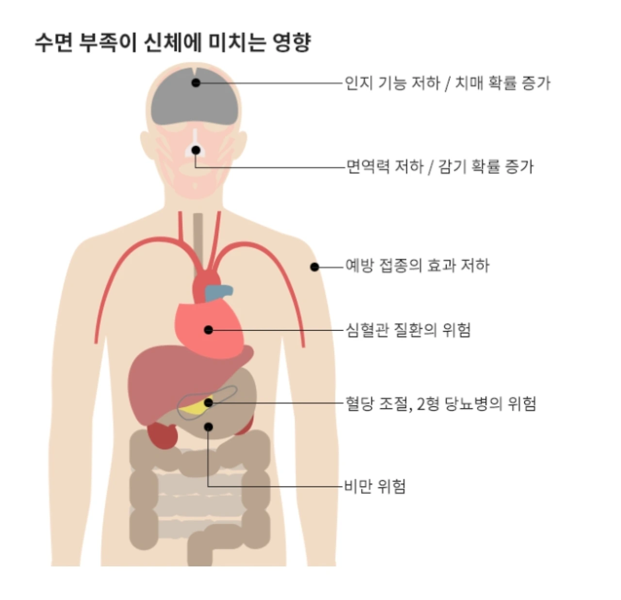 반면, 수면이 부족하게 되면 신체에 어떤 영향이 미치게 될까?