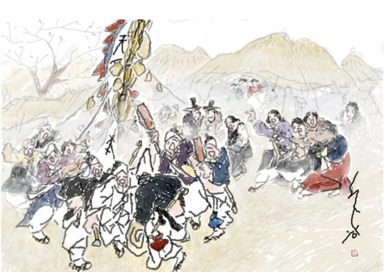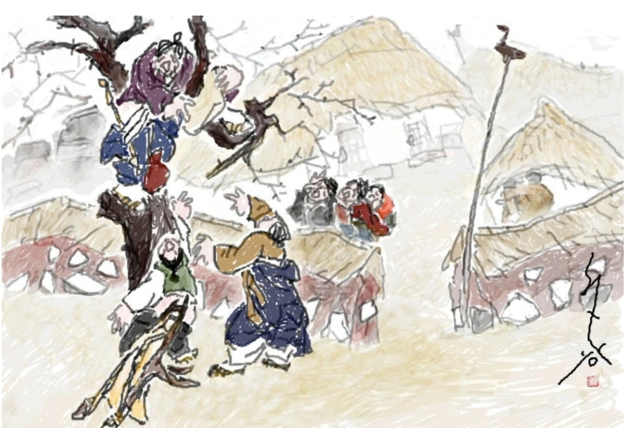 개대추나무, 배나무, 감나무 등의 가지에 돌을 끼워 넣고, 일종의 모의 성행위를 묘사해 열매의 풍년을 기원했다.