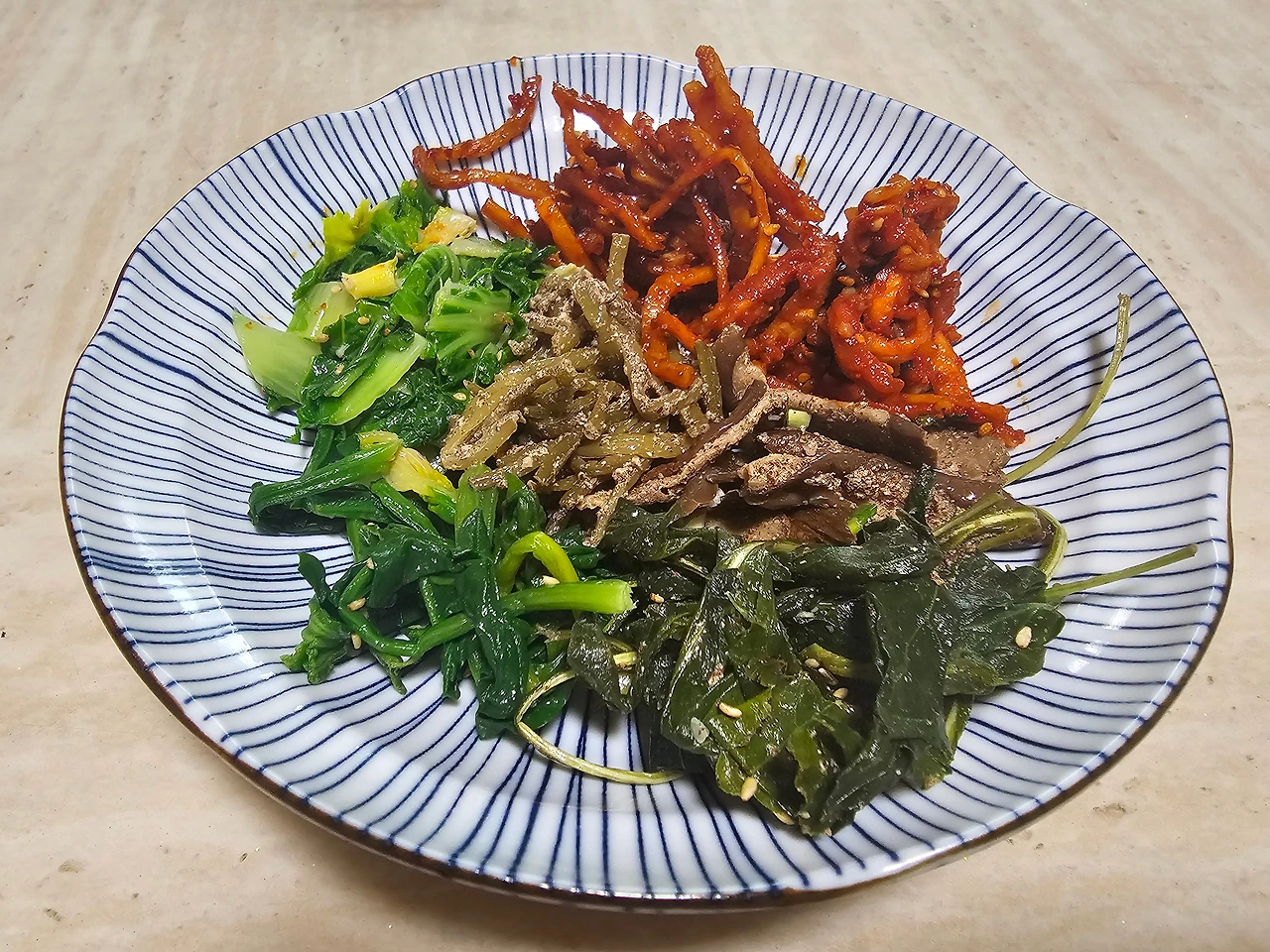어젯밤부터 엄마는 나물을 데치고, 오물조물 무치시는 데 여념이 없으셨다.