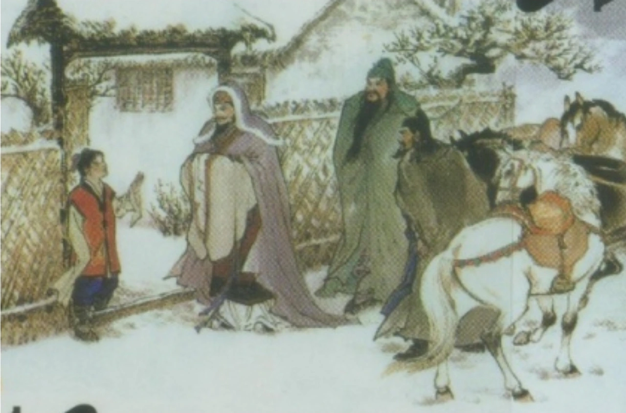 유비와 제갈량의 첫 대면은 그리 순탄치만은 않았다. 형주의 명사 수경선생 사마휘의 소개로 융중의 와룡강에 산다는 제갈공명을 만나기 위해 유비는 자신의 의형제인 관우와 장비와 함께 세 번이나 제갈량의 집에 방문한다. 첫 번째, 두 번째 방문에서 제갈량을 만나보지 못한 유비는 제갈량이 집에 있다는 소식을 접하자마자, 서둘러 제갈량의 초려를 찾아간다. 유비가 제갈량의 집에 도착했을 때, 마침 제갈량은 잠을 자고 있었고, 유비는 반나절 동안 서서 제갈량이 깨어나기를 기다렸다. 드디어 제갈량이 잠에서 깨어나자, 유비는 제갈량에게 깊이 절을 하며 예를 올린다. 제갈량은 유비를 보고 깜짝 놀라지만, 곧 의관을 정제하고, 유비를 맞이한다.