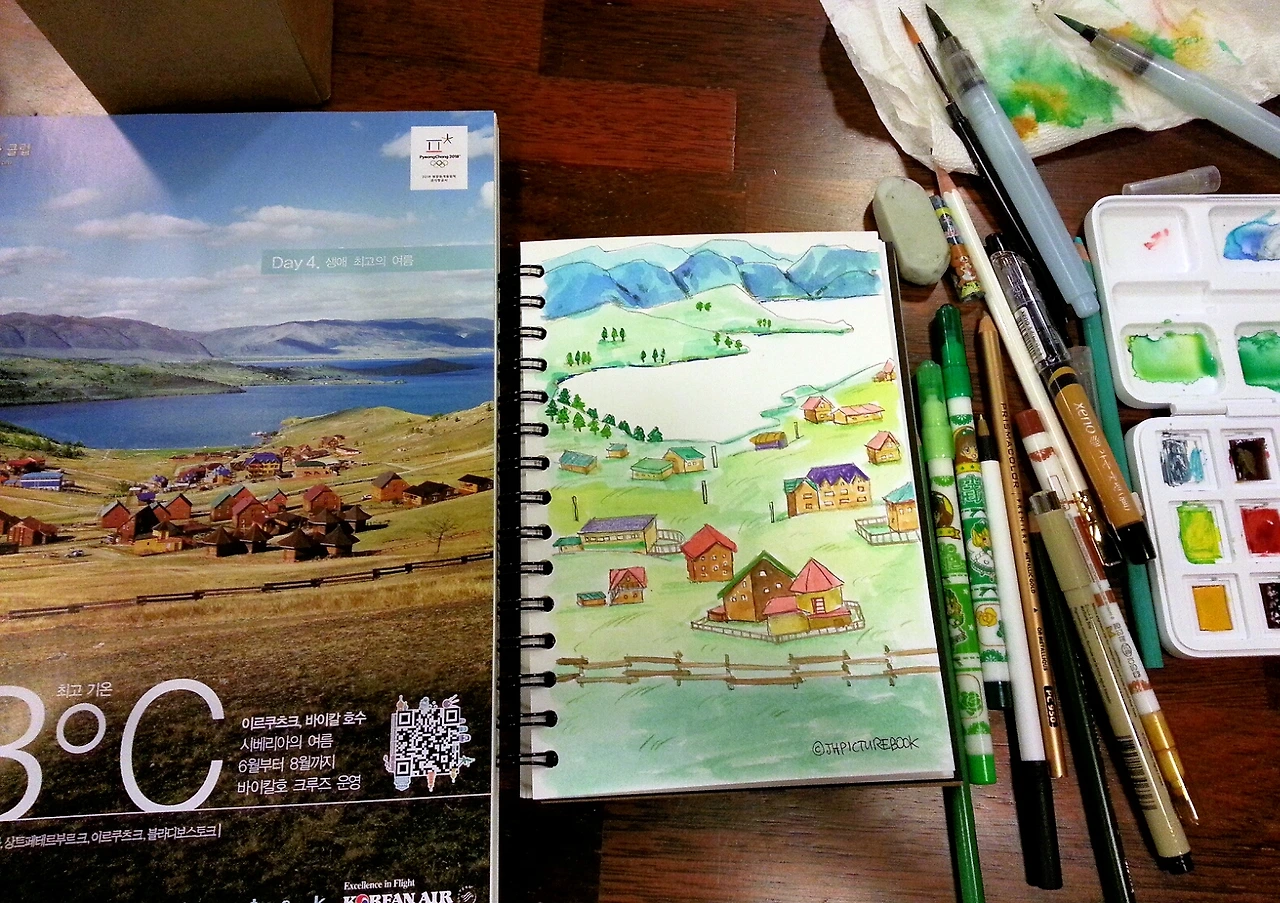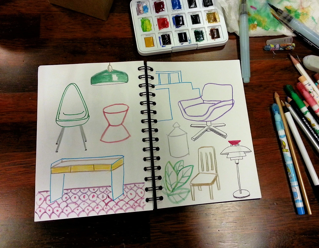 <행복한 집> 잡지를 보고 풍경과 가구를 그려 보았다.