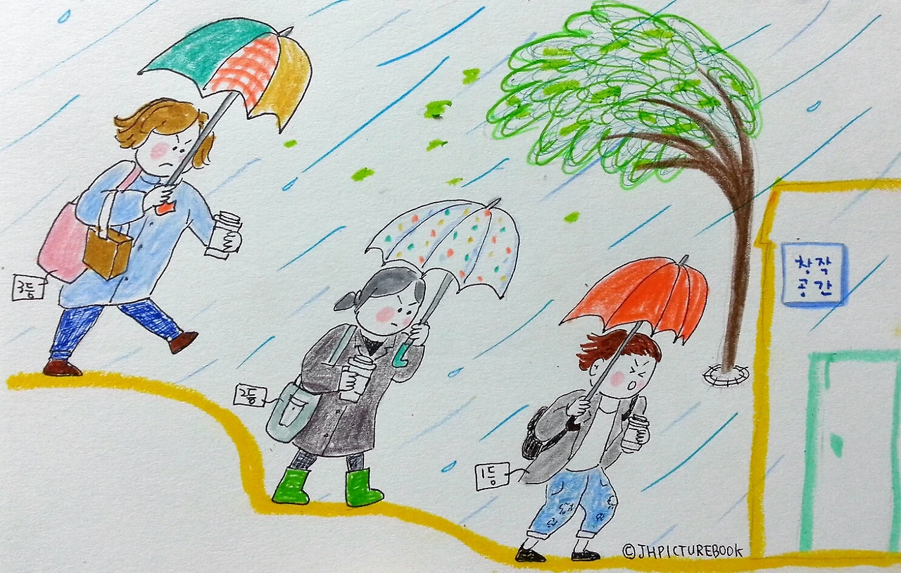 비바람 속에서도 우리는 창작공간으로 모여들었다.