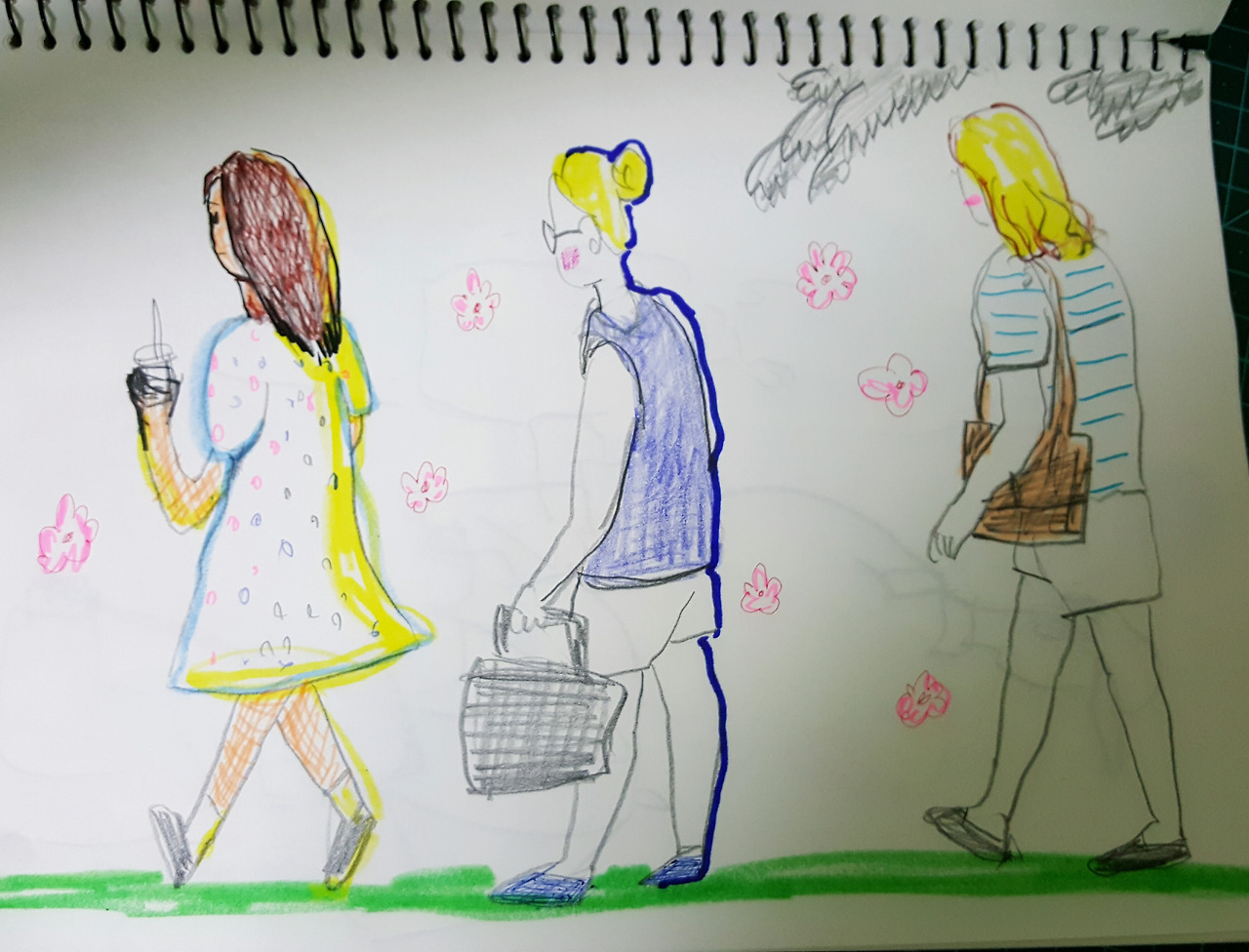 카페에 앉아 지나가는 사람들을 직접 보고 그린그림과