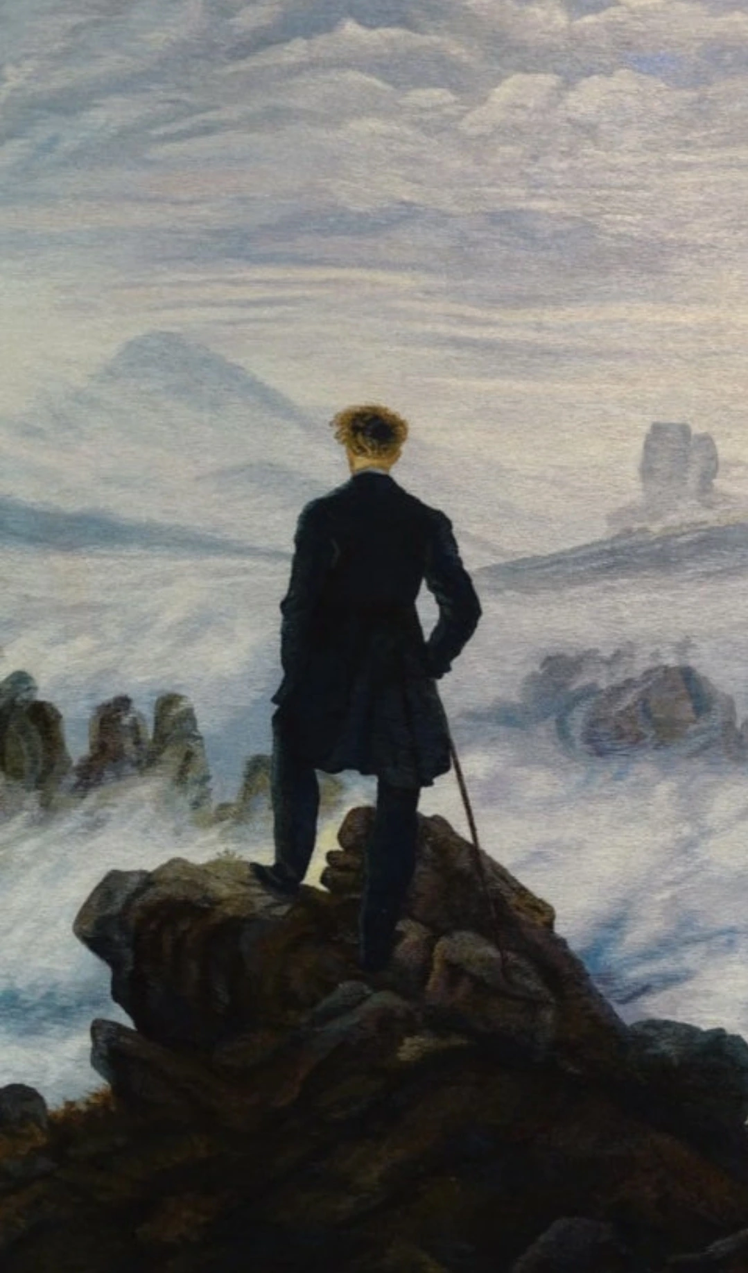 얼마 전 책에서 본 그림이 생각나요. 카스파르 다비드 프리드리히의 (1818)인데요. 경계선이 보이지 않는 안개 낀 바다의 신비스러움과 고독하게 서 있는 사람의 뒷모습은 묘하게 빠져들게 만들어요. 하데스도 어쩌면 지상 세계보다 더 철두철미하게 지하 세계를 다스려야 하기에 퀴네에를 쓰고 자신만의 공간에서 철벽을 치고 고독의 시간을 보내며 사색하고 있을지도 몰라요.