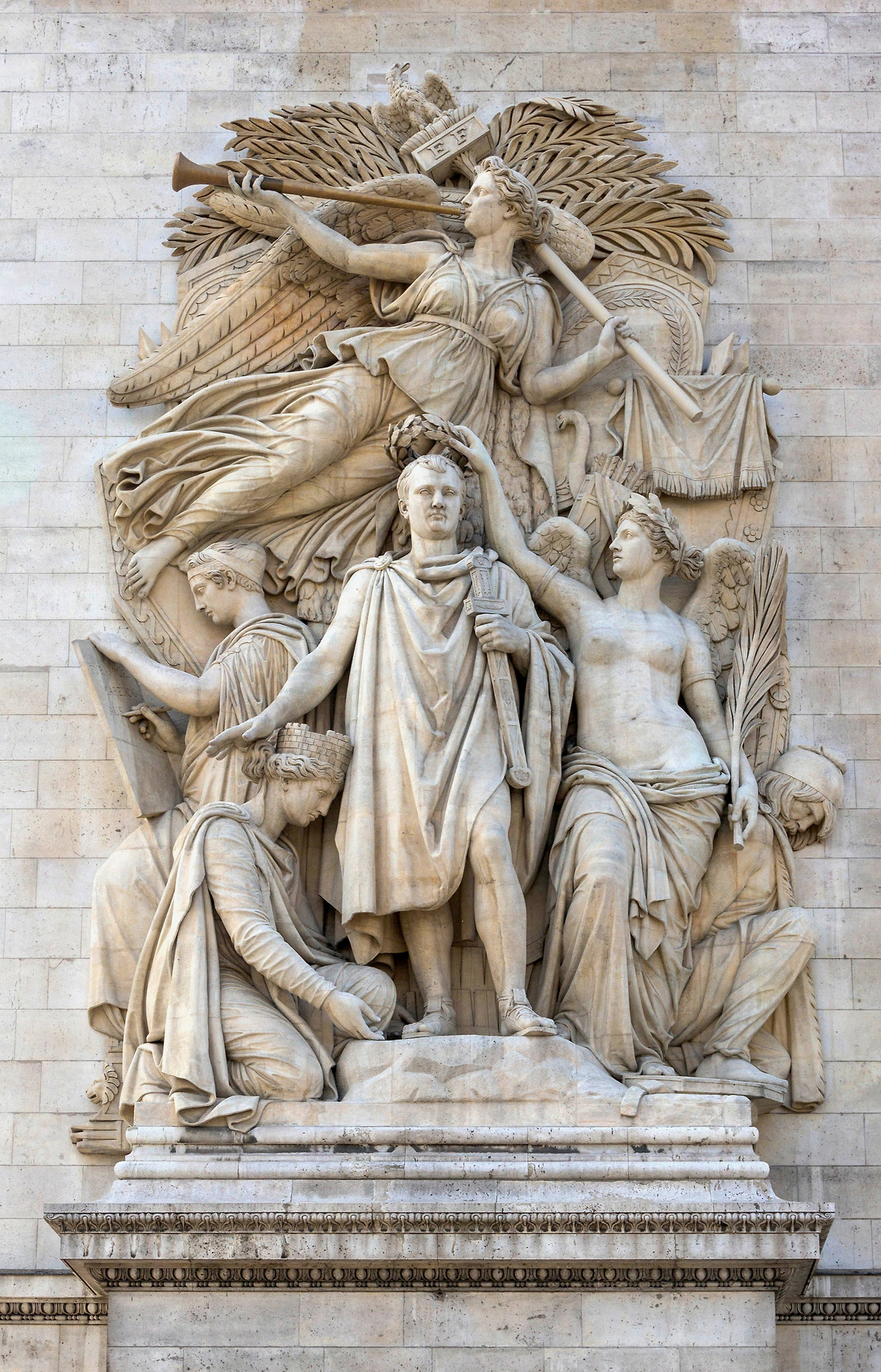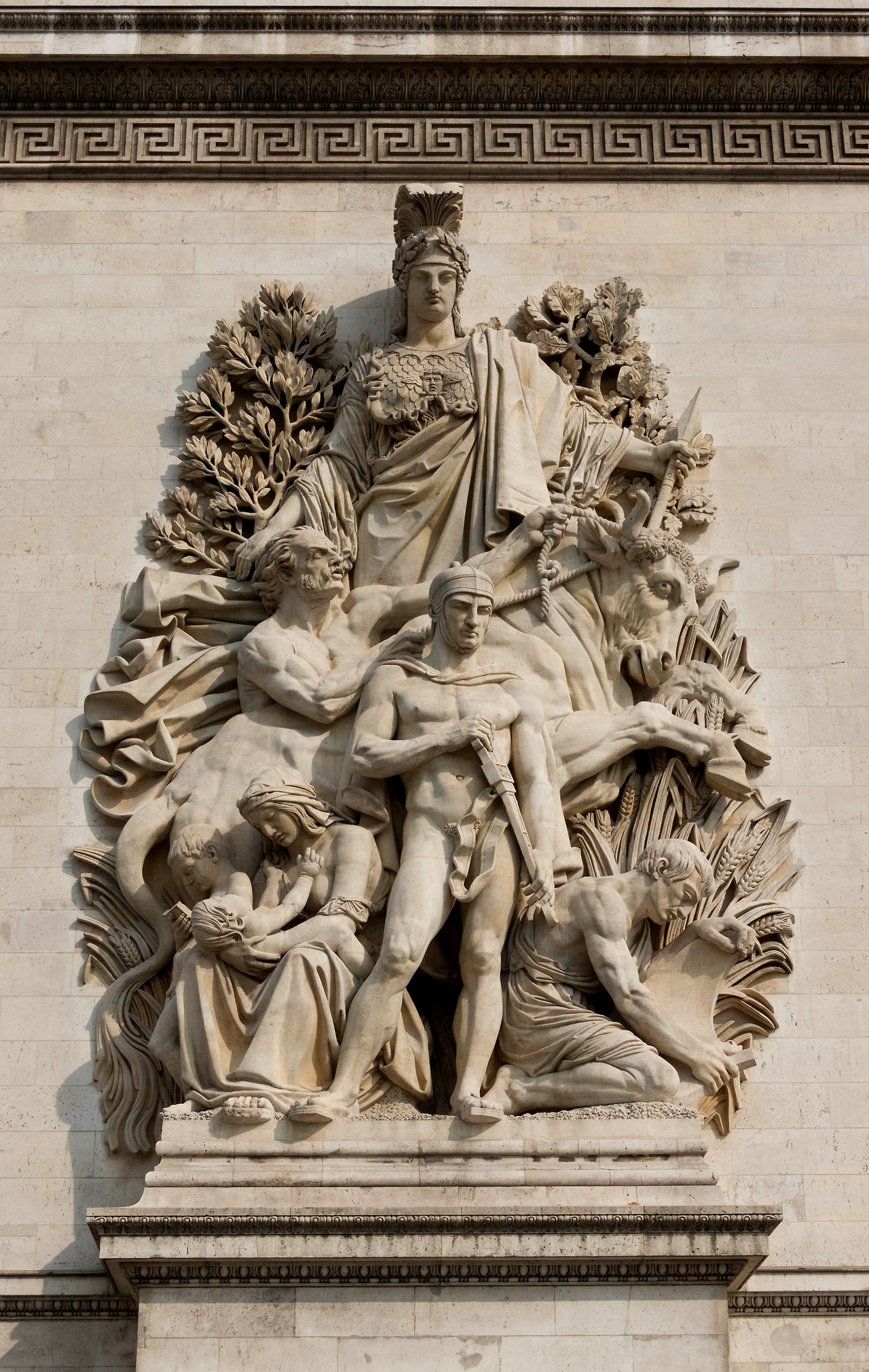 샹젤리제를 굽어 보고 있는 두 부조 중 오른쪽의 부조가 ‘라 마르세예즈’라 불리는 ‘프랑스와 휘드(Francois Rude:1784-1855)’의 작품이다. 이 부조는 프랑스 혁명군의 1792년 8월 10일 봉기를 기념하는 유명한 작품이다. 이 작품의 주인공인 마리안은 프랑스 민중의 여신으로 유명한 캐릭터다. 최근 노란 조끼 시위대에 의해 개선문 안에 전시된 마리안 상이 파손되었다는 뉴스도 있었다.