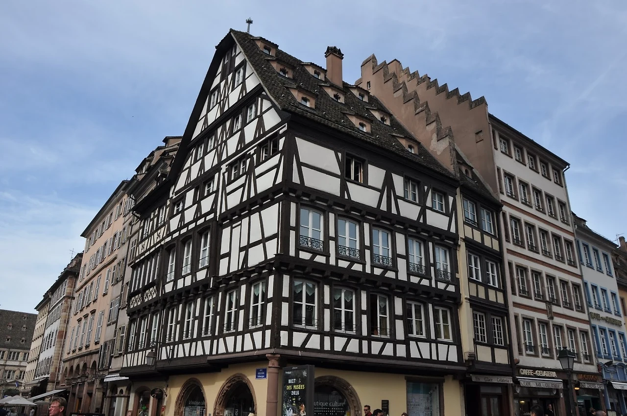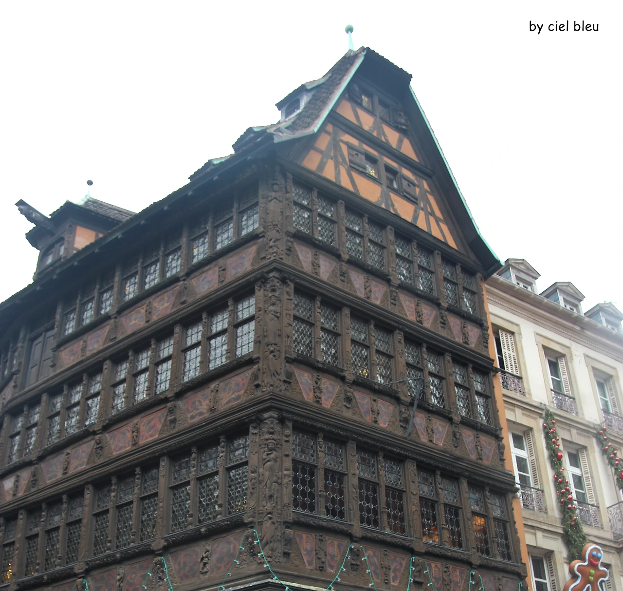 이 건물의 왼편에는 겉모습이 심상치 않아 보이는 또 하나의 건물이 시선을 사로잡는다. 전 건물주의 이름을 따 'Kammerzell House'라고 부르는 이 건물은 돌로 된 하단 위에 정교하게 장식된 외관의 상층이 포인트다. 멋진 경사를 자랑하는 지붕과 어우러져 광장의 유명 건물로 사랑을 받고 있다. 너무도 정교하게 조각된 외관은 12개의 별자리와 인간의 생, 오감(five senses), 신화와 중세 전설 속의 영웅들이 조각되어 있다. 너무 세밀하여 망원경이 필요할 정도다. 손재주가 놀랍다. 1층에는 이 지역 화가인 Leo Schnugg의 벽화가 유명한 전통 레스토랑이 인기인데 그 벽화의 내용이 재미있다. 내용은 16세기로 거슬러 올라간다. 스위스 취리히를 출발한 배가 18시간 항해 후에 스트라스부르에 도착했는데 냄비의 수프가 식지 않았다고 한다. 이것은 두 도시 간의 동맹관계를 나타내는 사건으로 무슨 일이 생기면 이 정도로 즉각 지원을 하겠다는 뜻으로 생각한다는 것이다.