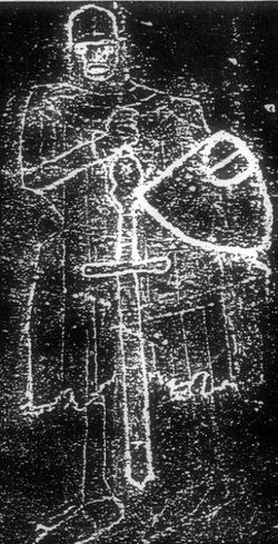 템플 기사단과의 연관성을 보이는 부조가 있는데 말을 탄 두 인물의 모습이다. 기사와 십자가를 든 두 인물이 말을 같이 타고 있는 모습인데 이처럼 한 말에 두 명의 기사를 태우는 방법은 템플 기사단이 자주 쓰던 방법이라고 한다.