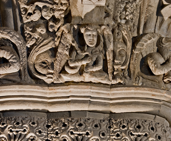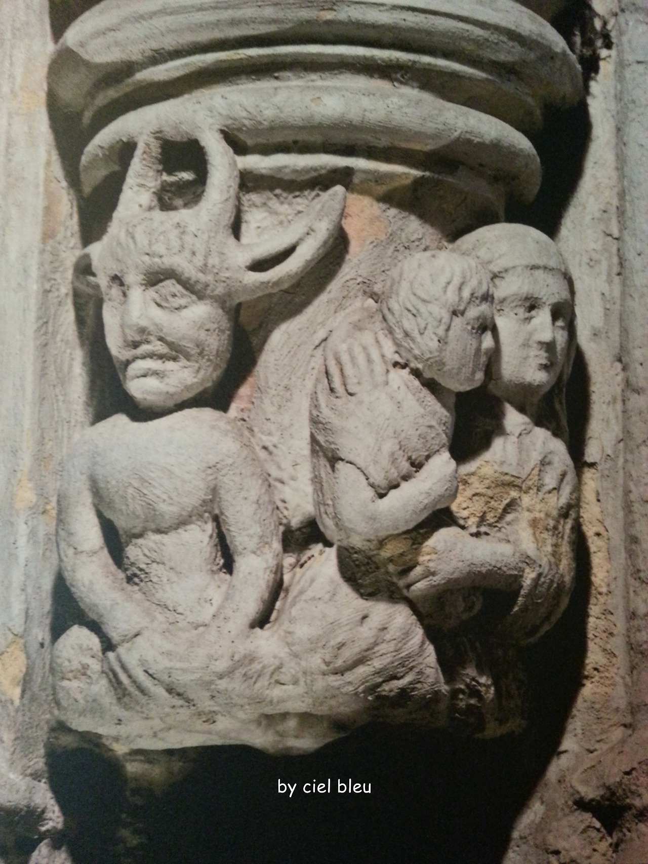 또 다른 부조는 설명은 '연인과 사탄'이라고 되어 있는데 내 눈에는 신앙심 깊은 사람 사이를 사탄이 끼어들지 못하고 팽 당하는 모습처럼 보인다. 보기 나름이다.