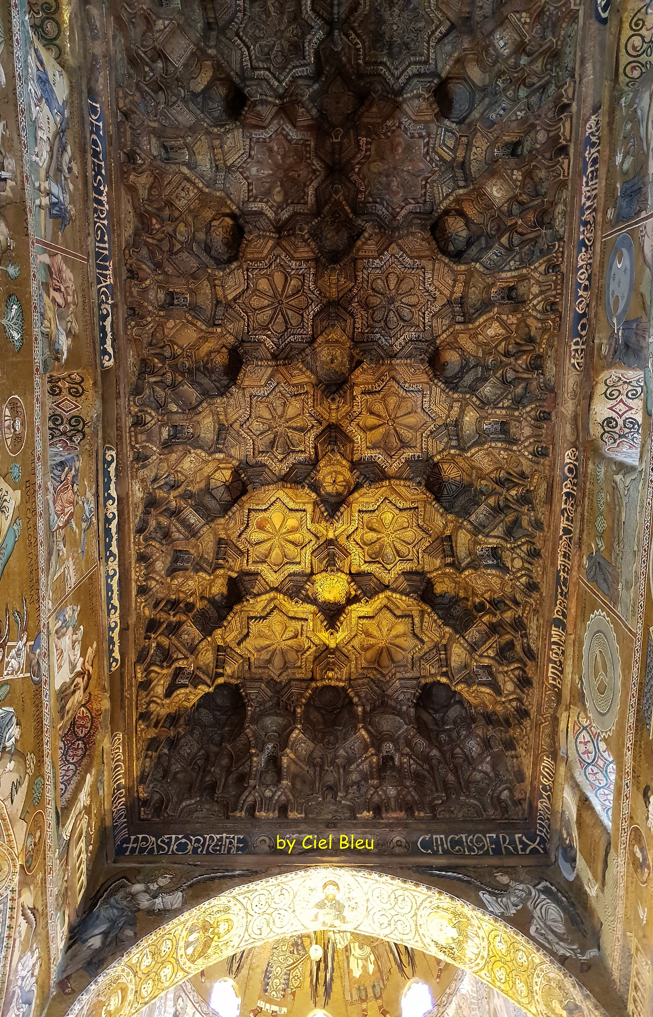 양쪽 벽은 창세기부터 구약과 신약의 42개의 장면들과 그리스도가 행한 기적들의 이야기들로 빽빽이 그리고 화려하게 장식되어 있다. 천장은 역시 이슬람의 전형적인 대칭 기법으로 멋지게 장식되어 있다. 보는 내내 뒷목을 잡고 올려다볼 수밖에 없으며 오페라글라스가 있다면 세세한 관람에 큰 도움이 될 것이다.