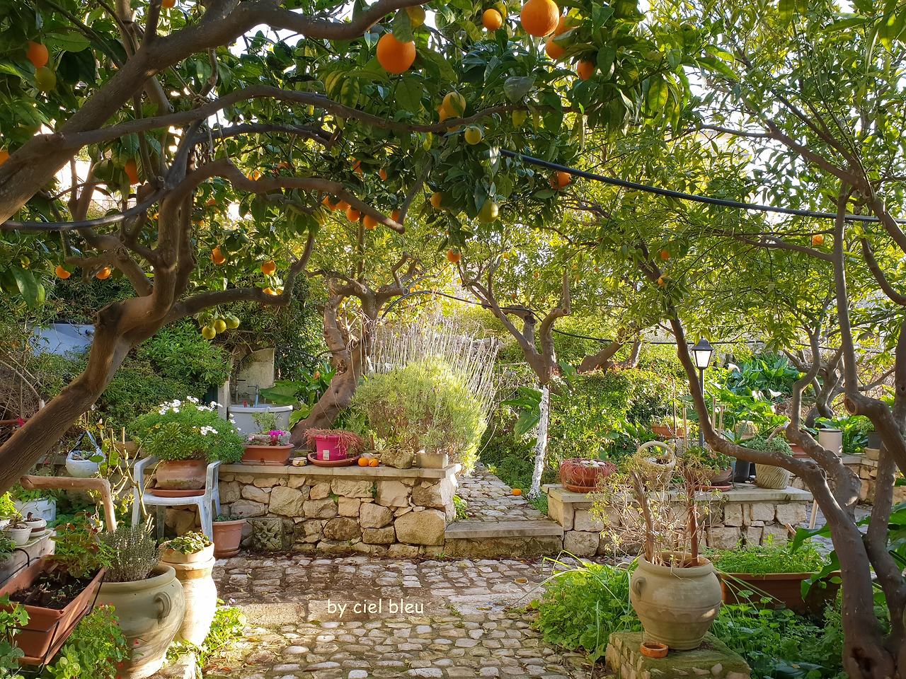 모디카 숙소의 오렌지와 레몬이 가득한 정원