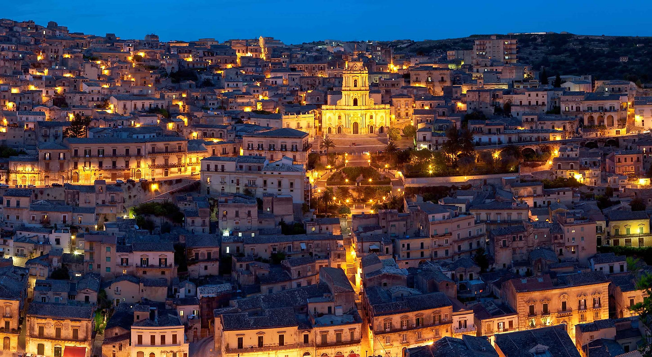 모디카를 대표하는 야경, 중앙에 성 조지 성당이 보인다.