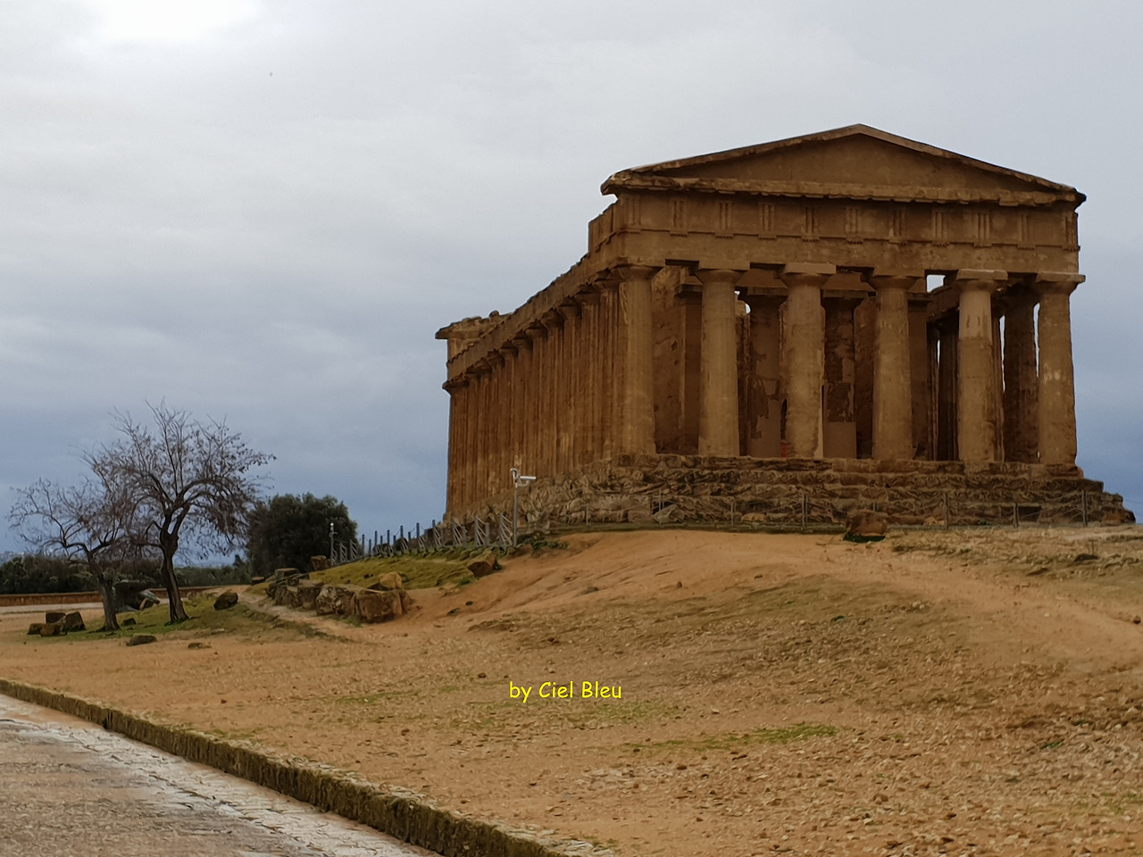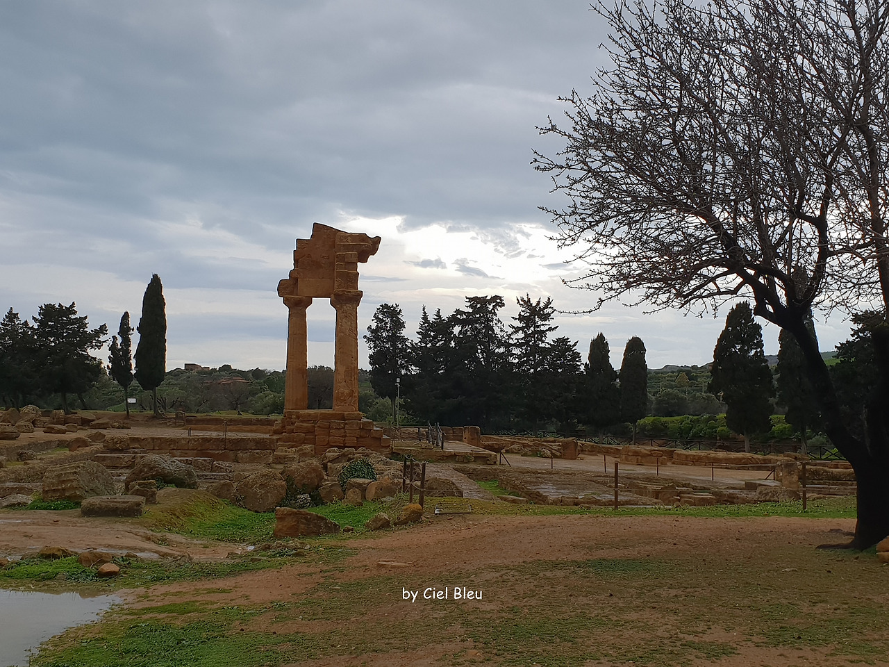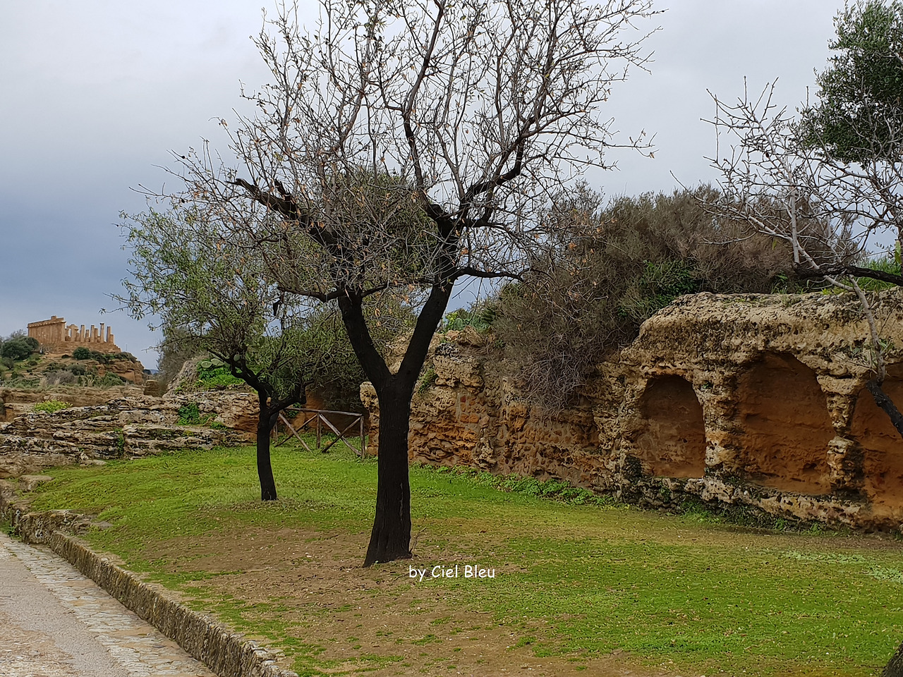 아침 일찍 '신전의 계곡'을 찾아서인지 이 어마어마한 세계 유산은 또 나의 독무대다. 이젠 으레 혼자만 있는 것이 당연하게 까지 느껴진다. 시실리 최고의 유적지에서의 독무대라면 이런 특수 상황은 즐겨줘야 한다. 비도 오는 건지 마는 건지 맞고 걷기 좋을 만큼 뿌려 먼지 걱정까지 덜어 준다.