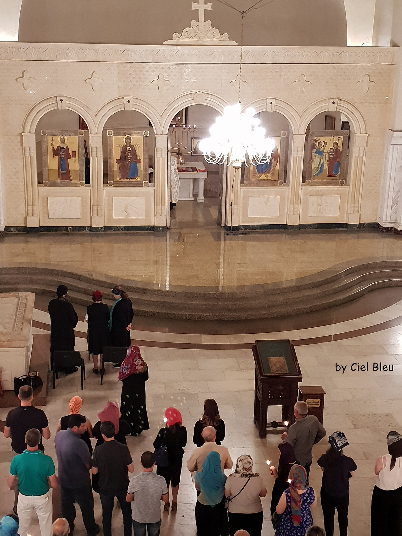 기도를 들이고자 하는 이들은 모두 서서 예배를 드려야 하고 교회 안에는 제단과 벽화와 이콘과 그 앞을 밝히는 촛대가 다다.