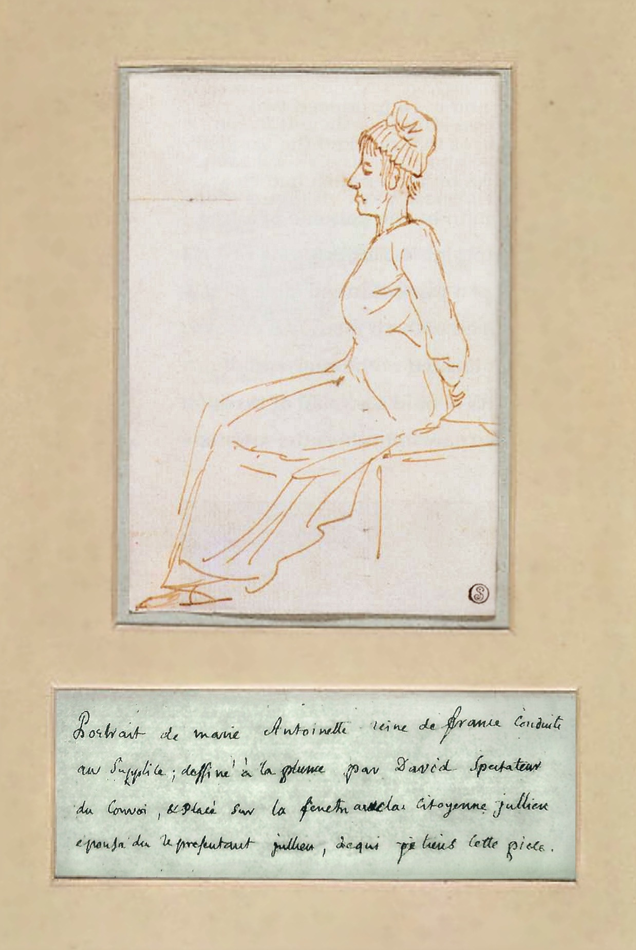<마라의 죽음(Marat, Martyr de laRevolution, 1793)>, 다비드,루브르마라가 살해당하고 3개월이 지난 10월에는 루이 16세의 왕비 마리 앙투아네트가 처형당하게 되는데 이때 군종 속에 섞여 있던 다비드는 처형장으로 끌려가는 왕비의 모습을 포착해 스케치 한 점을 남겼다.