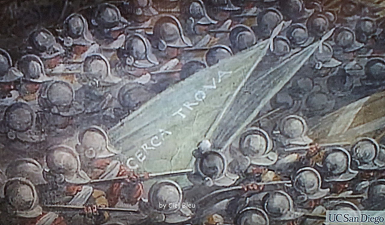 '마르시아노 전투' 그림 중앙에 노란 표시에 'CERCA TROVA'라고 쓰여 있다.