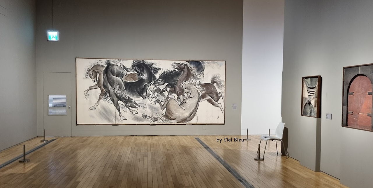 전쟁으로 폐허가 된 나라, 청각을 잃은 장애를 넘어 다시 재 도전하는 열망으로 마치 살아 움직이는 듯한 군마도를 탄생시킨 작가의 열정이 느껴지는 듯하여 자리를 뜨기가 어렵다.