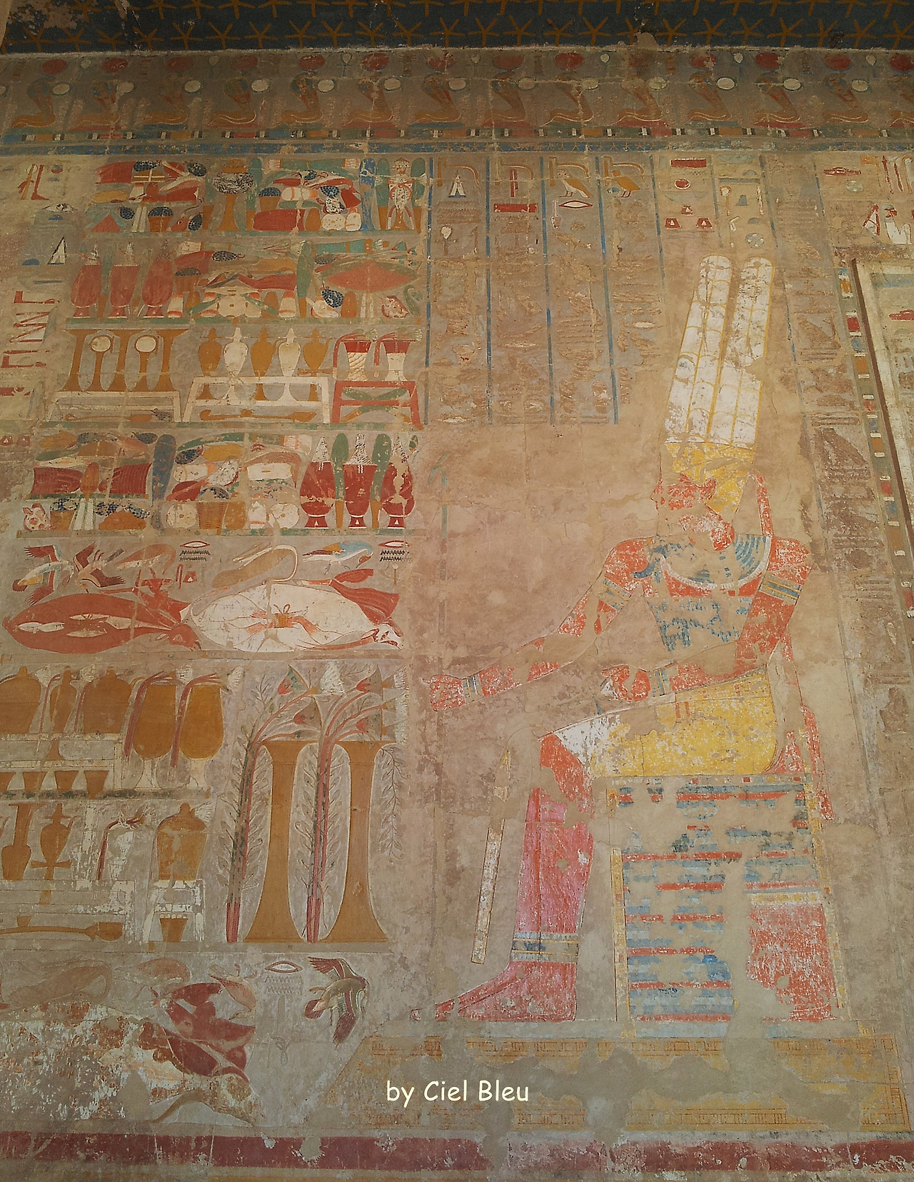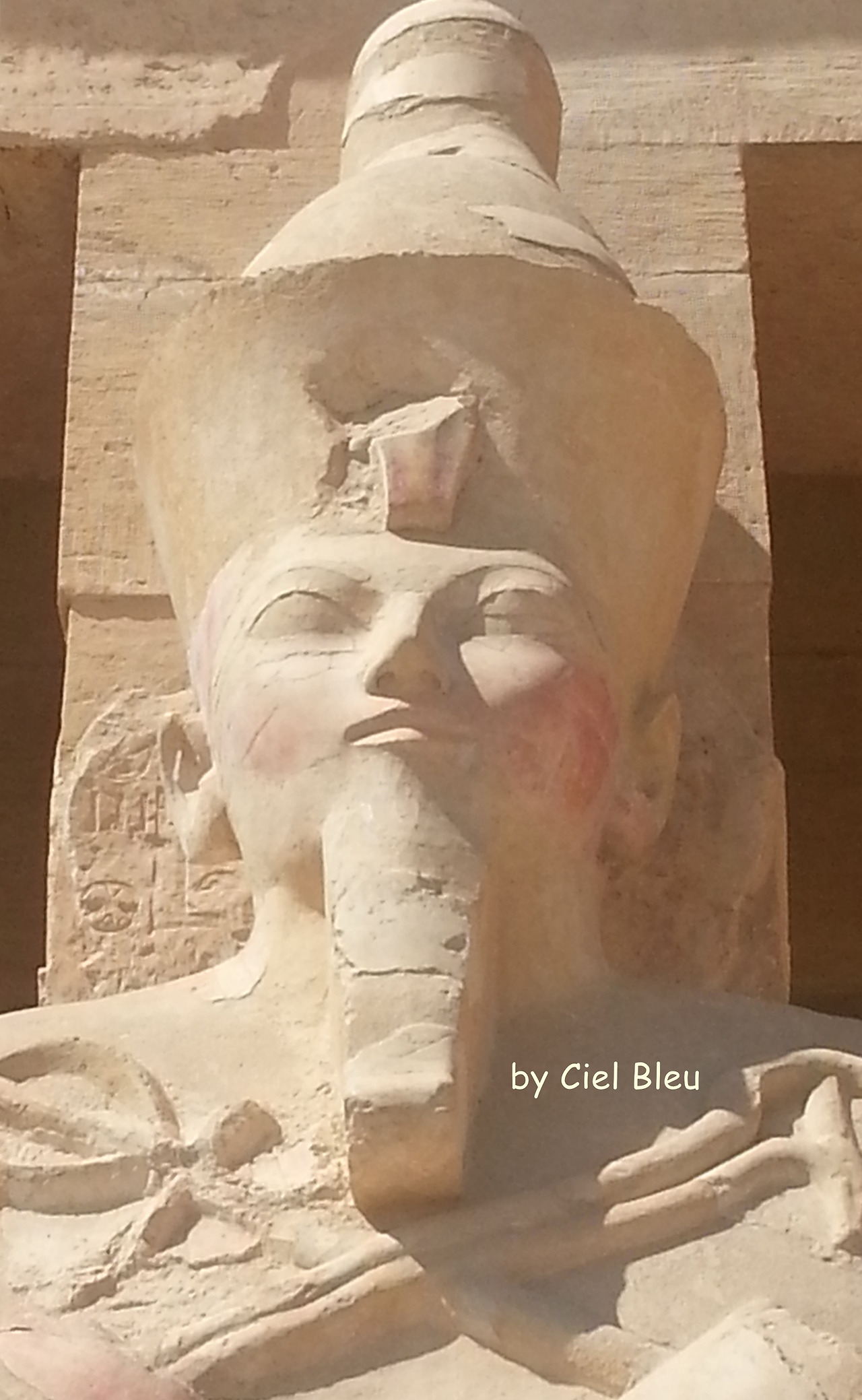 다시 세상 빛을 본 '장제전'에 세워진 그녀의 동상은 그녀의 부활을 의미하듯 아마 천에 싸여 있는 미이라 같은 모습의 오시리스의 모습인데 군데군데 채색의 흔적이 아직도 남아 있다.