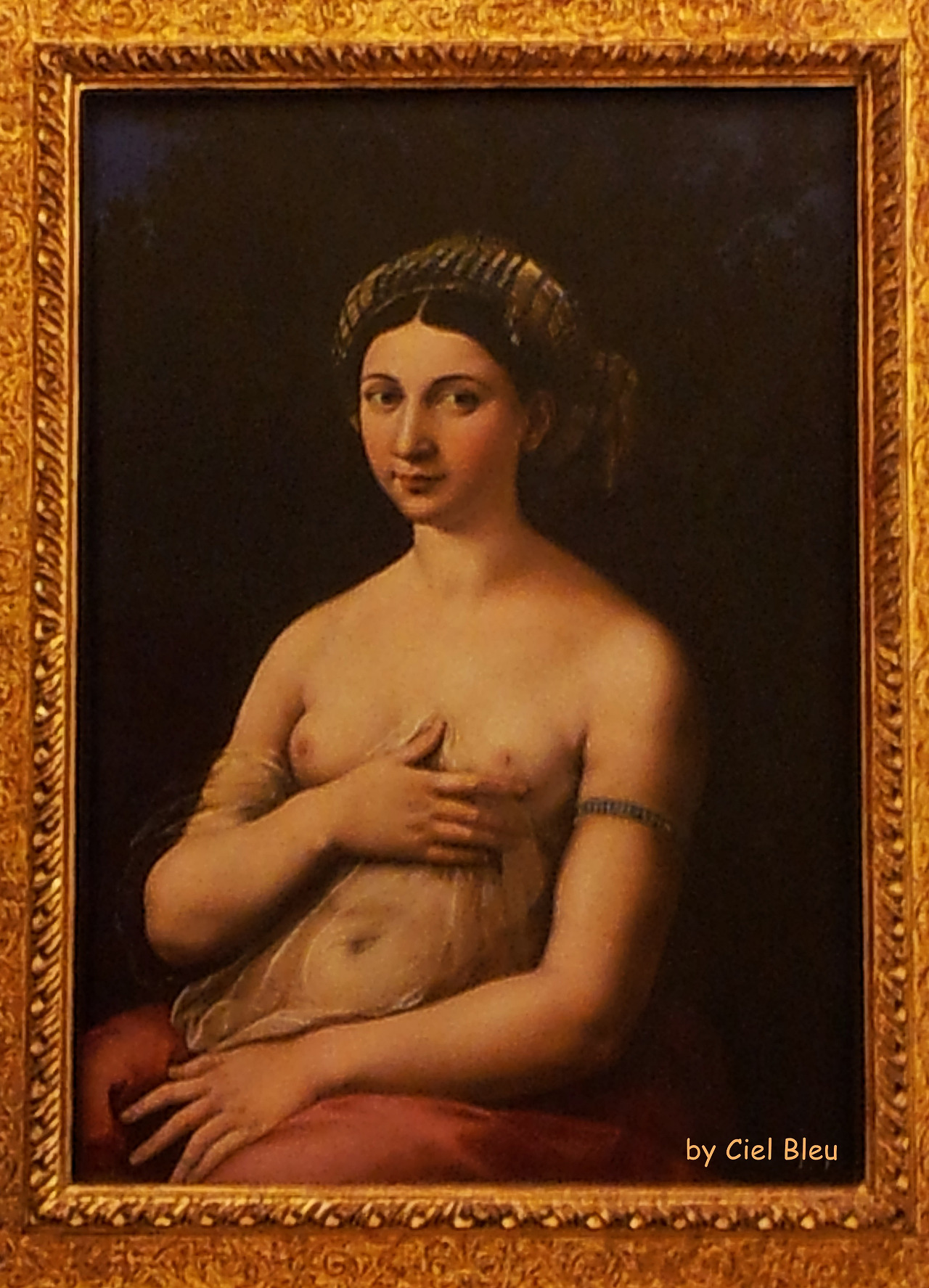 '빵집딸(La Fornarina)'이란 제목으로 알려진 이 그림은 라파엘로가 죽기 1년 전에 그린 그림으로 그가 자신의 집에 은밀히 소장하고 있었던 그림이다.