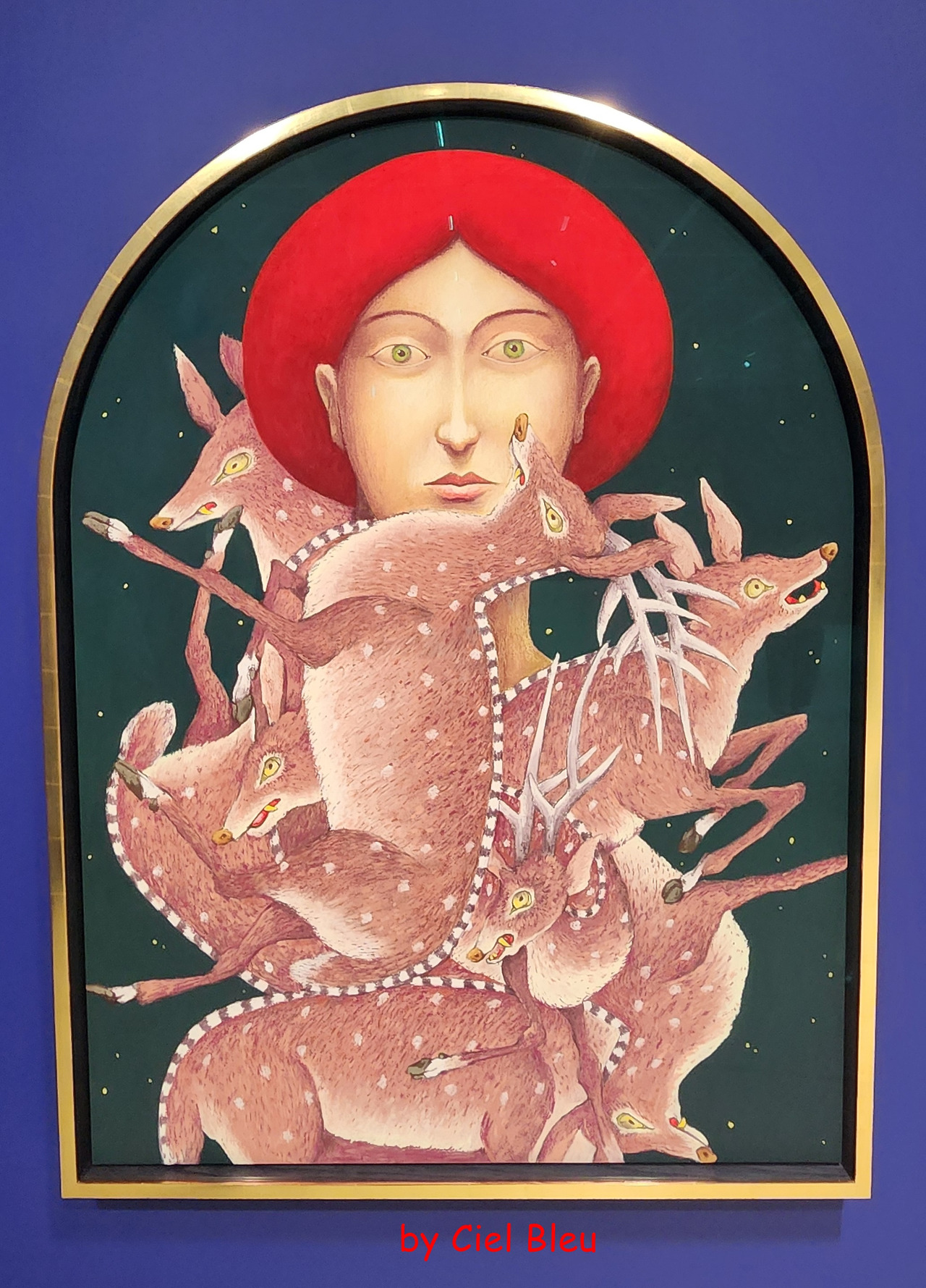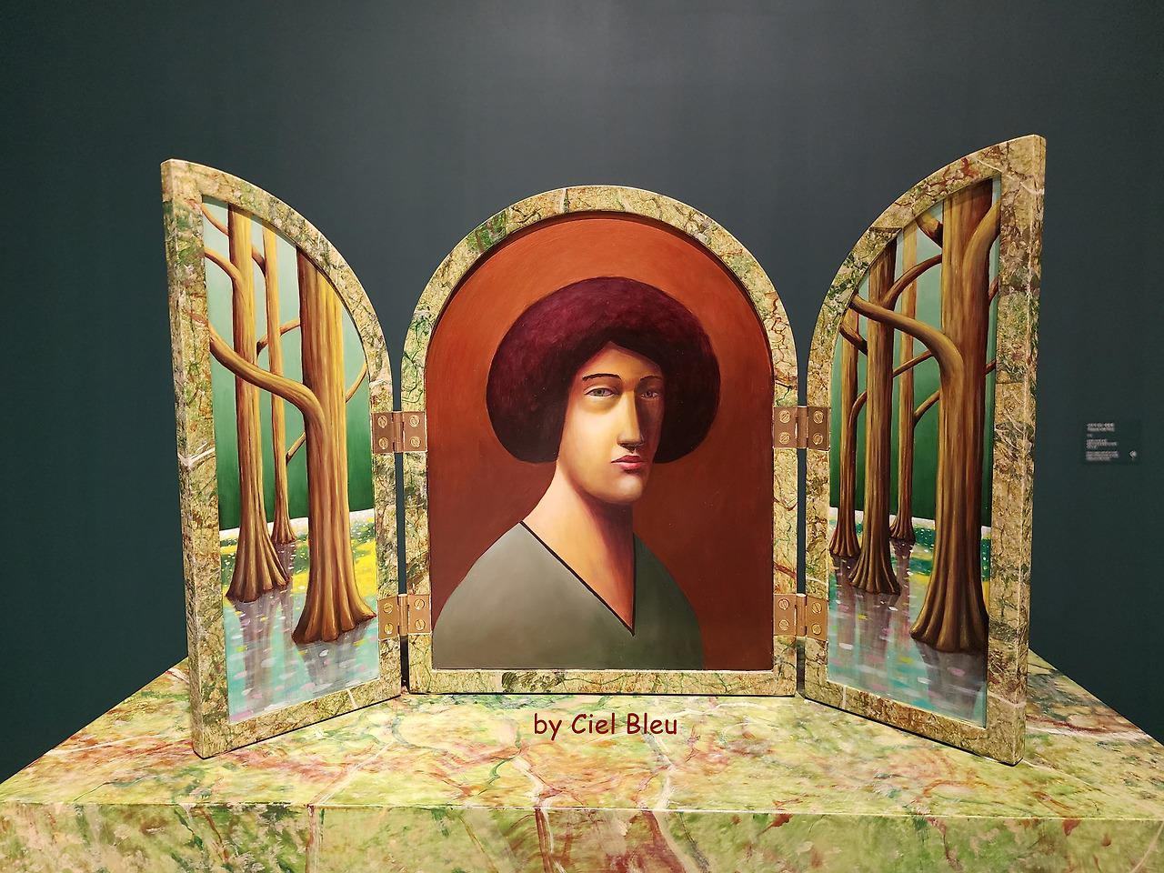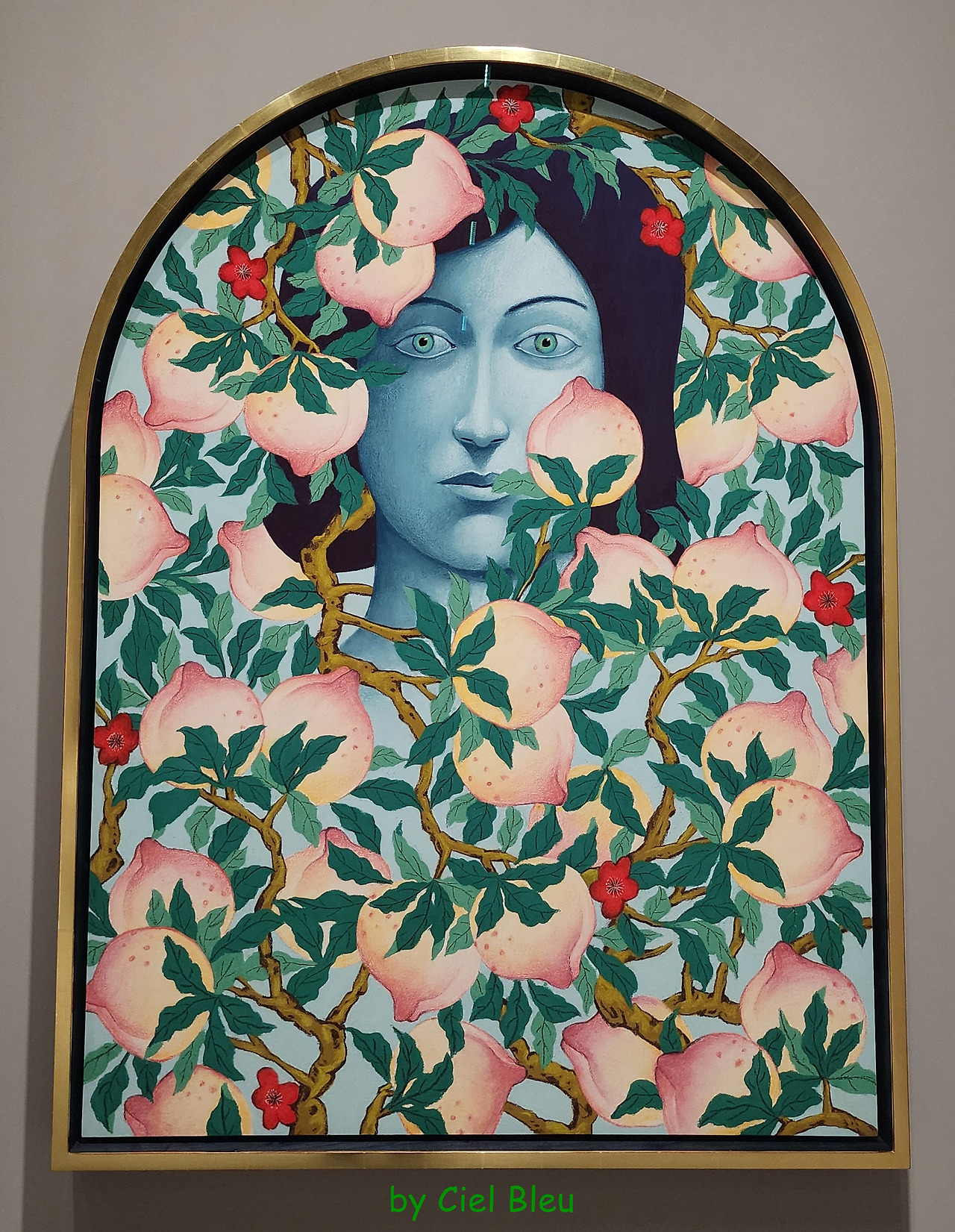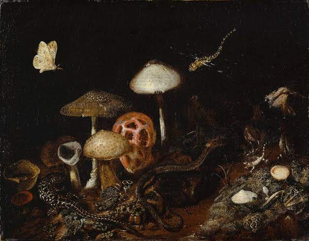 가운데 버섯과 나비가 있는 초상화는 버섯은 척박한 땅의 재생을, 나비는 변화와 완벽한 재 탄생을 의미한다고 한다. 17세기 네덜란드 화가 오토 마르세우스 반 스리크(Otto Marseus Van Schriek:1613-1678)의 작품을 인용했다고 한다.