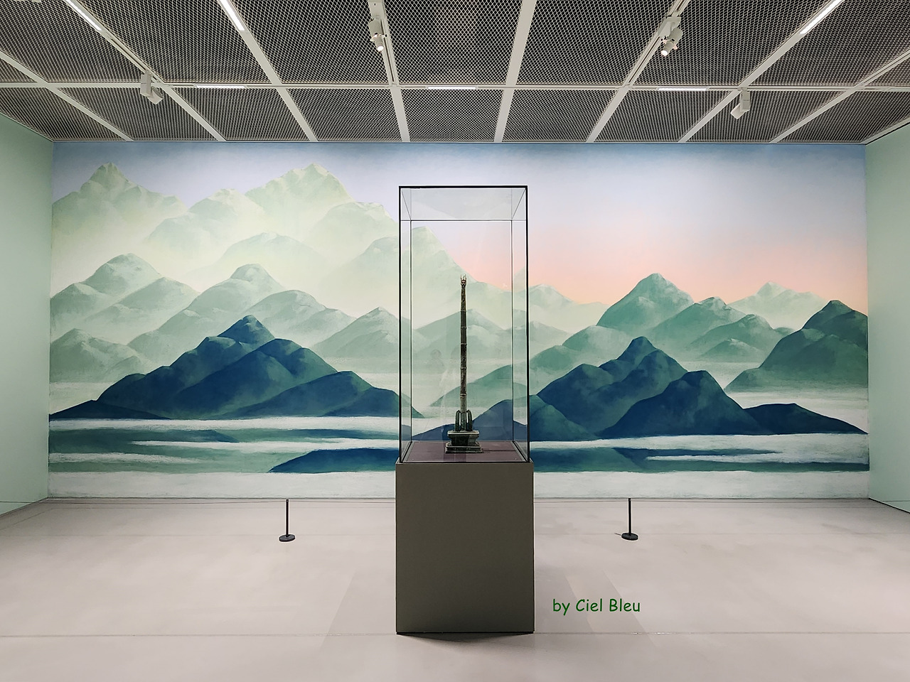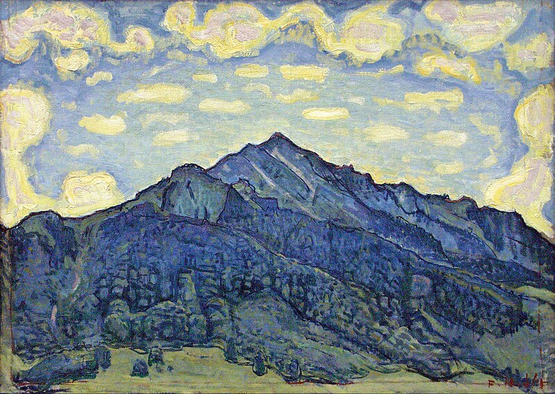 스위스 화가 페르디난트 호들러(Ferdinand Hodler:1853-1918)의 작품을 인용한 것인데 두 그림의 다른 점은 호들러의 산은 실제 산이고 파티의 그림 속 산은 상상 속의 산을 그린 것이라 한다.