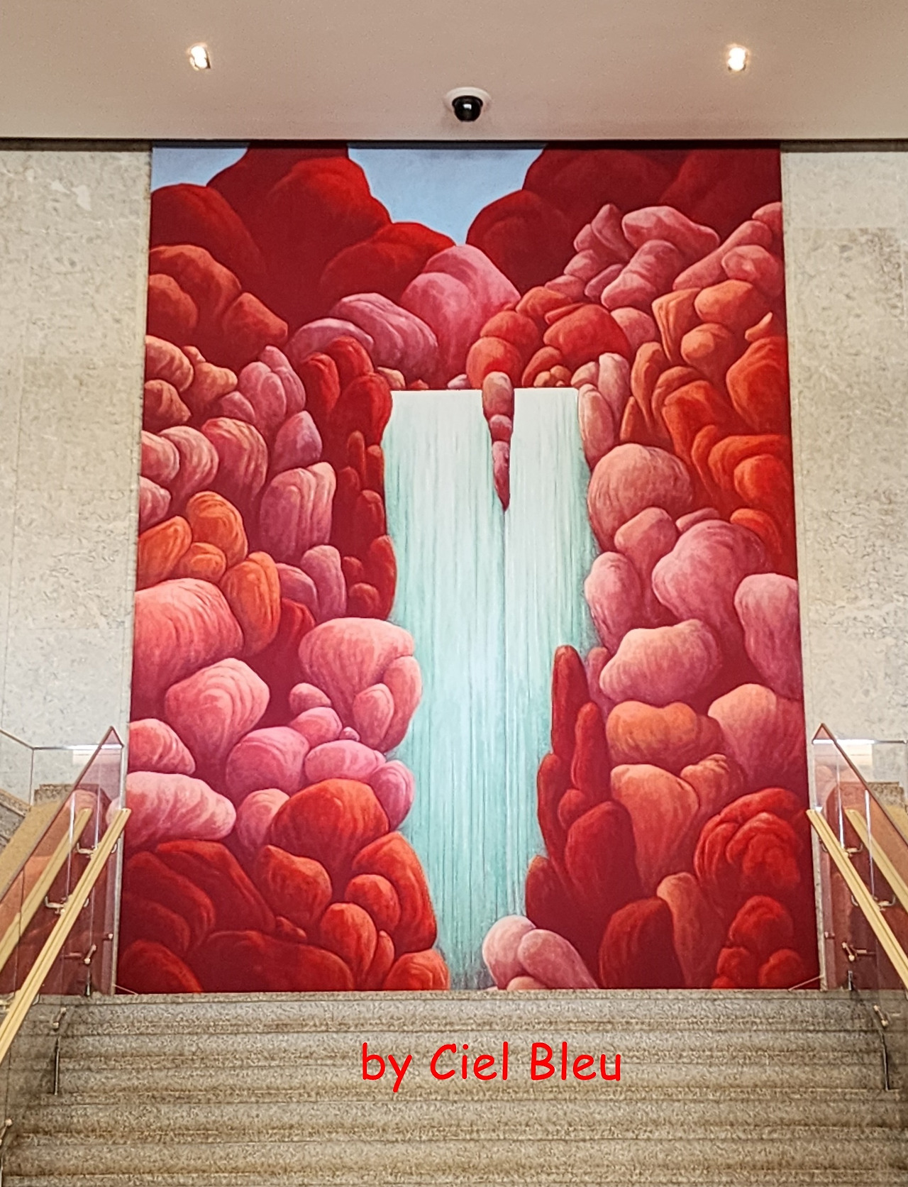 21세기의 새로운 버전의 파스텔화 전시회는 입구의 '폭포'라는 제목의 거대한 벽화로부터 시작된다.