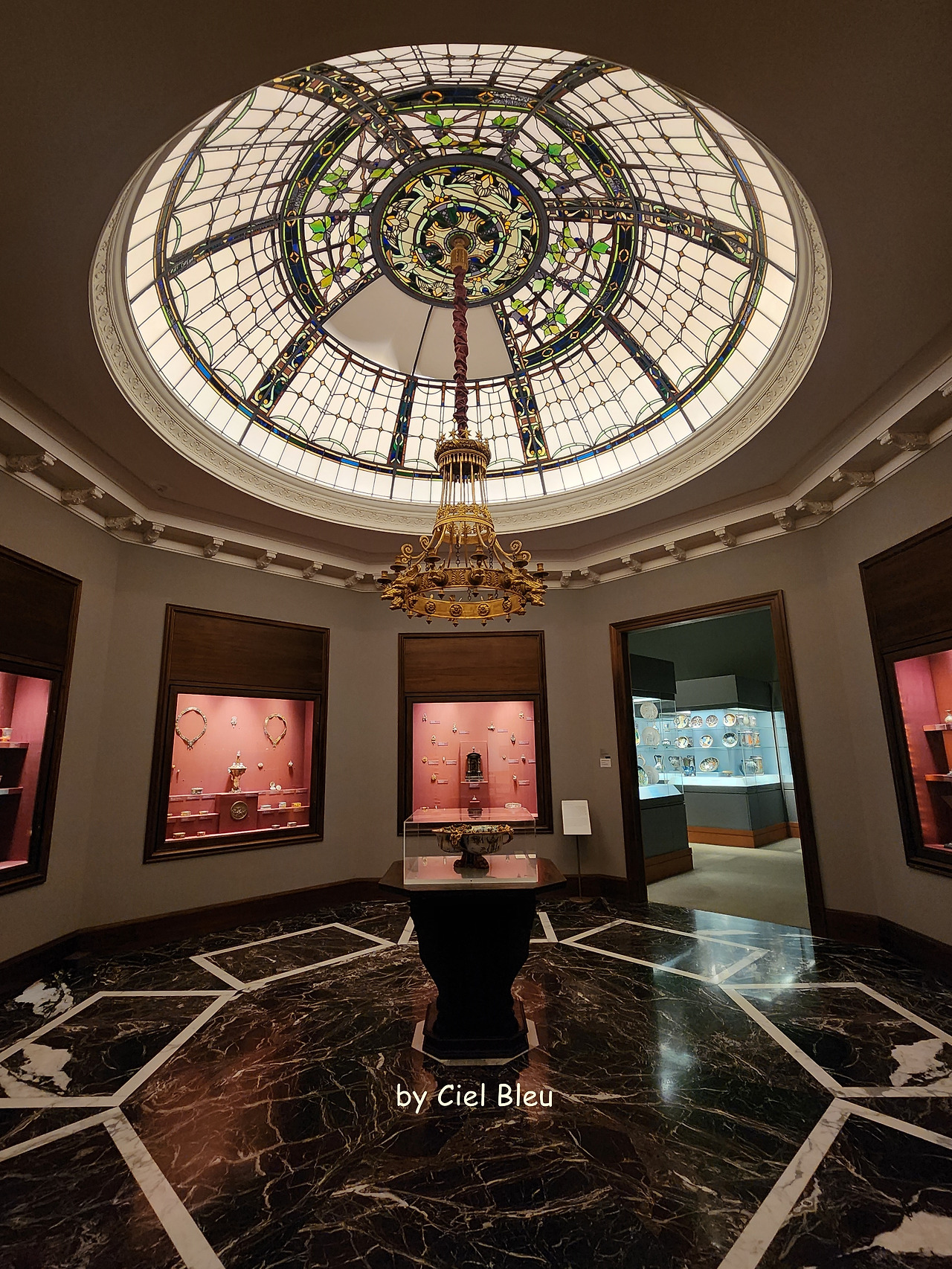 전시실 입구를 장식하는 철제문은 리먼 저택에서 가져온 것이고 스카이라이트 갤러리라 불리는 전시실에는 티파니가 디자인한 천장의 스테인드글라스와 샹들리에가 시선을 잡는데 이 또한 리먼 저택에서 가져온 것이다.