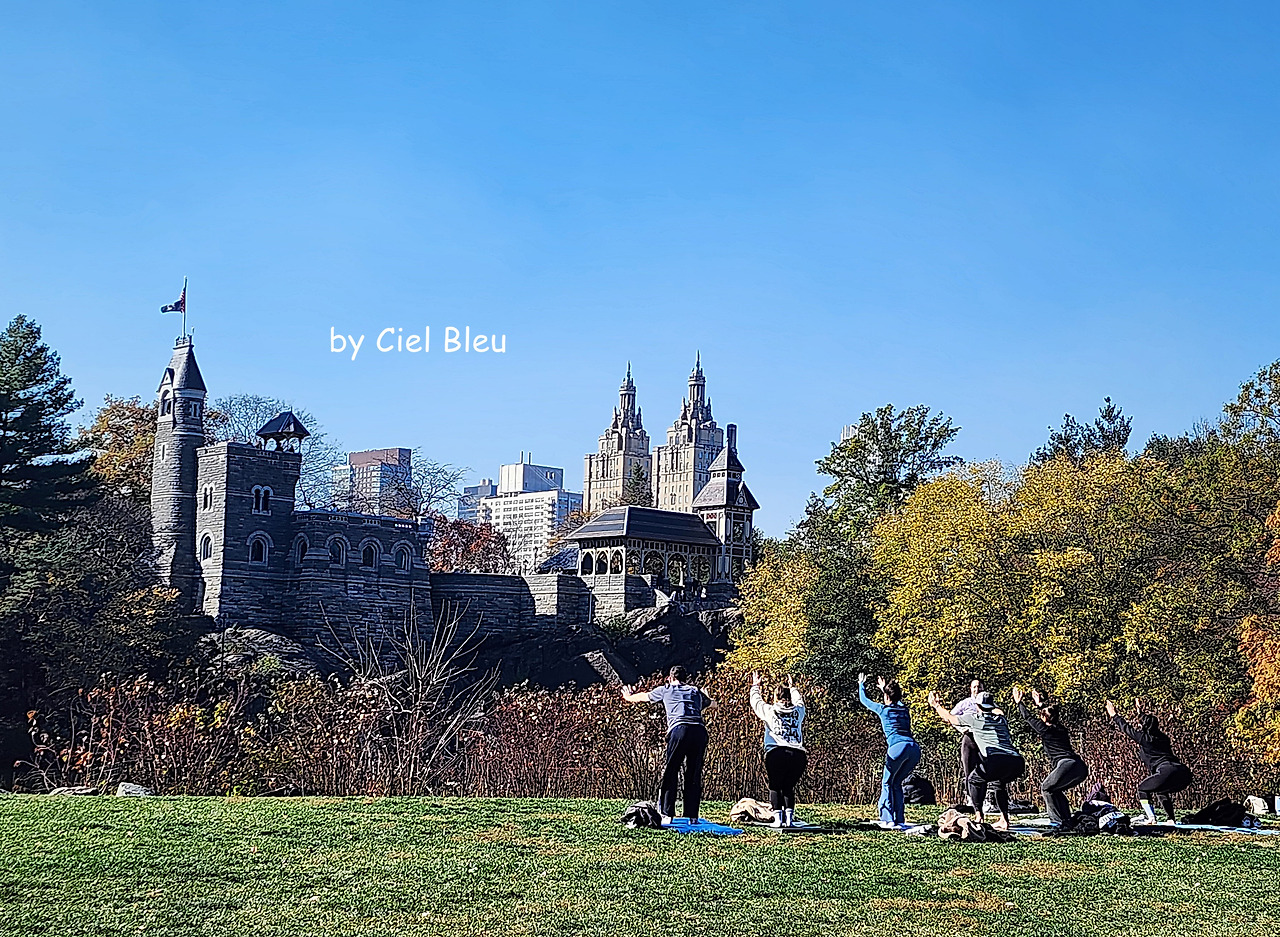 센트럴파크의 벨베데레 궁(앞에는 파크에서 매주 열리는 요가 클래스다)