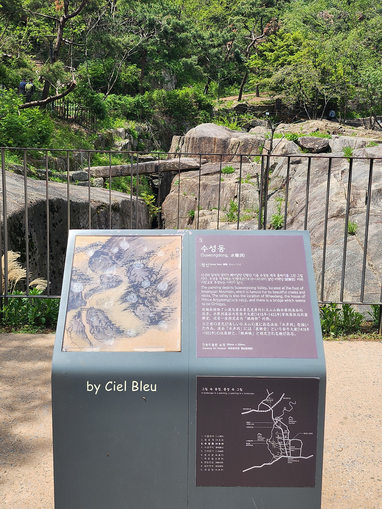 인왕산 일대 개발로 이곳엔 아파트가 지어졌다가 정선의 그림을 보고 다시 복원시킨 것이 오늘의 수성동 계곡이라고 나의 도슨트(?) 친구는 설명한다.