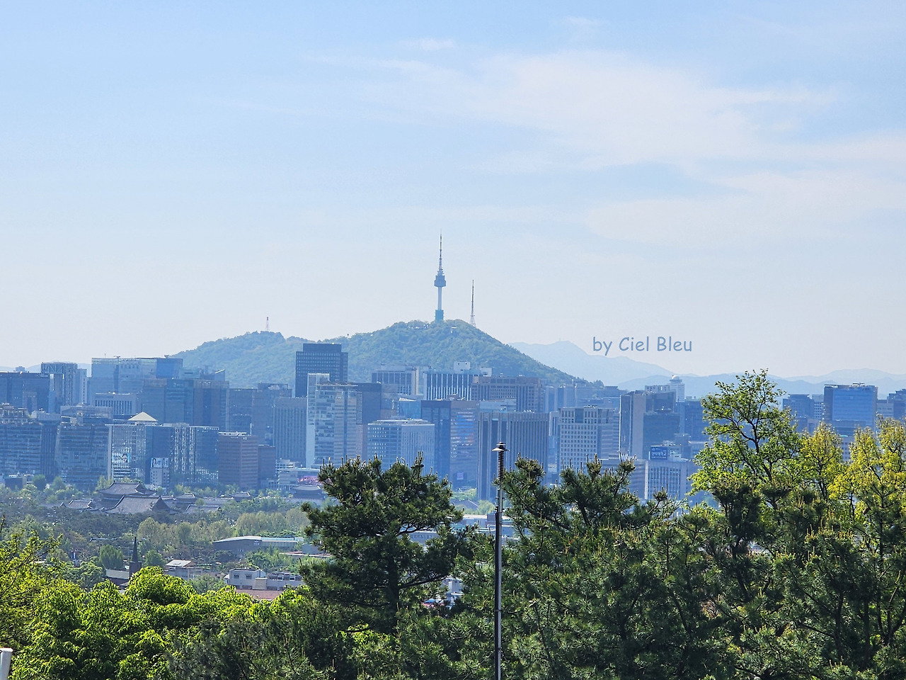 그래도 연 녹색 나뭇잎 사이로 보이는 하늘은 구름 한 점 없이 파랗고 저 멀리 간간이 보이는 남산 타워와 서울 시내 전경을 보면서 서울 도심에 이런 산책 길이 있다는 것에 뿌듯함을 느끼며 힘을 내 걷는다.