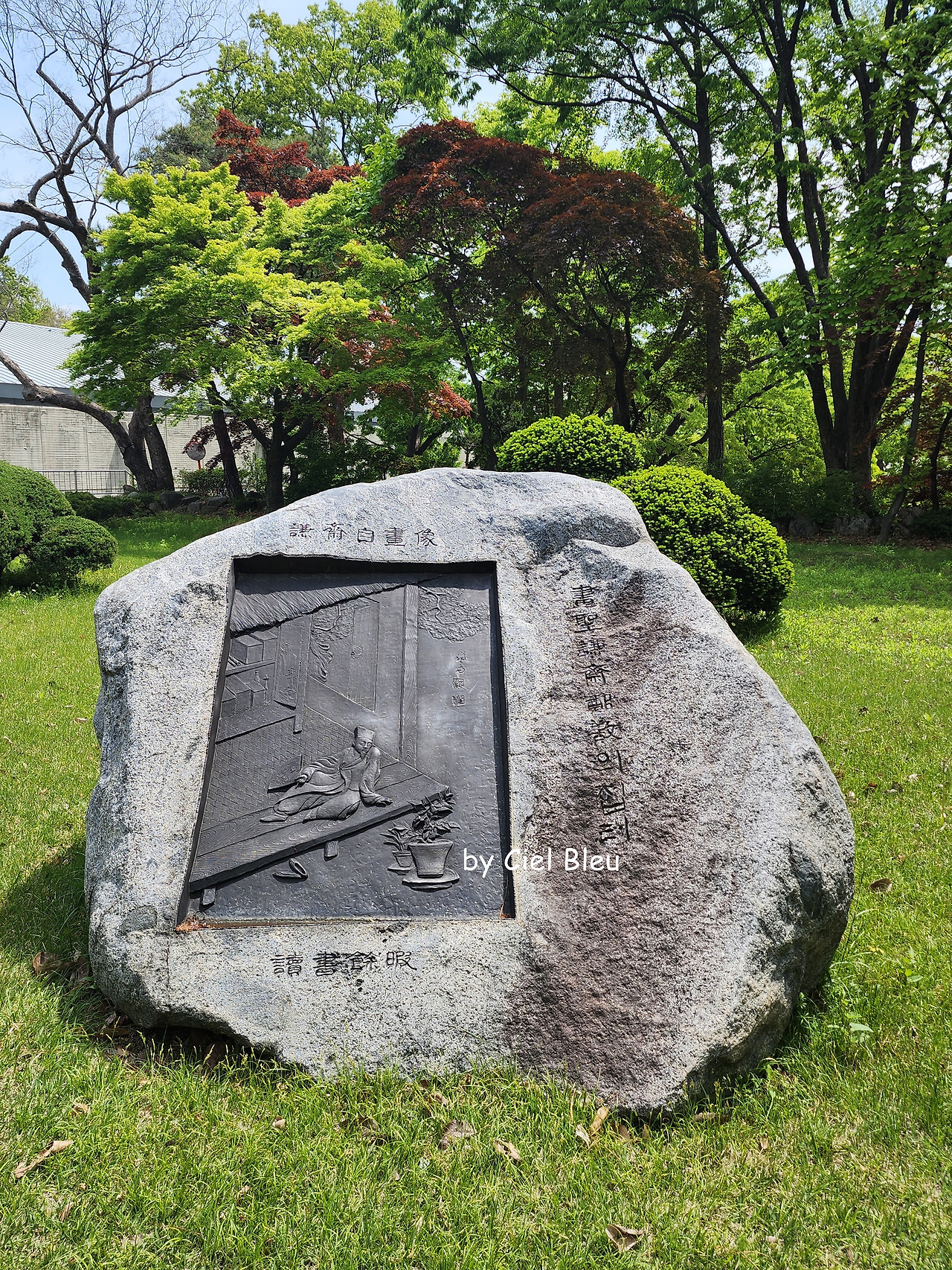교정 안 커다란 바위에 동으로 부조 형태로 만들어진 작품 속에 '독서여가도'가 고스란히 들어가 있었다.
