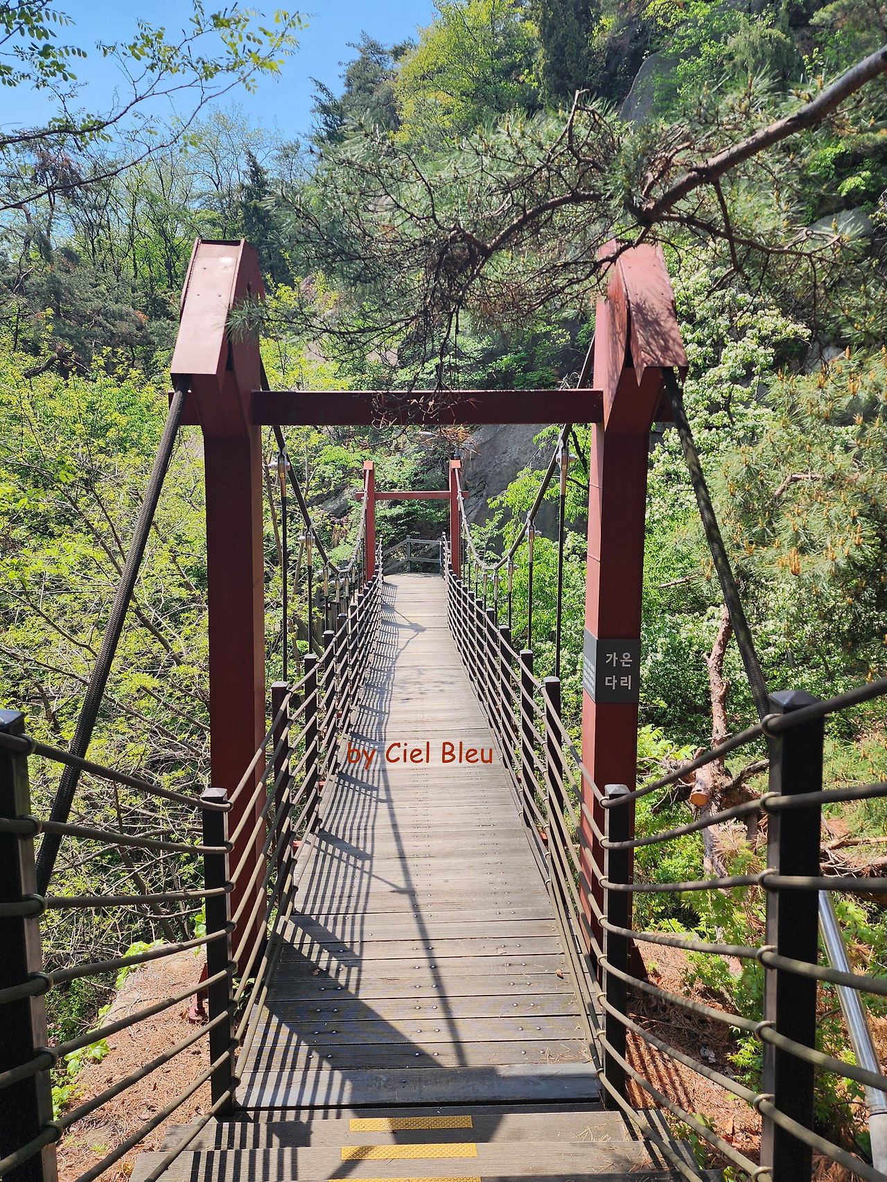 숲길을 빠져나오는가 싶더니 계곡에 간간히 앉아 있는 사람들이 보이고 많이 본 조그마한 돌다리 가 보인다.