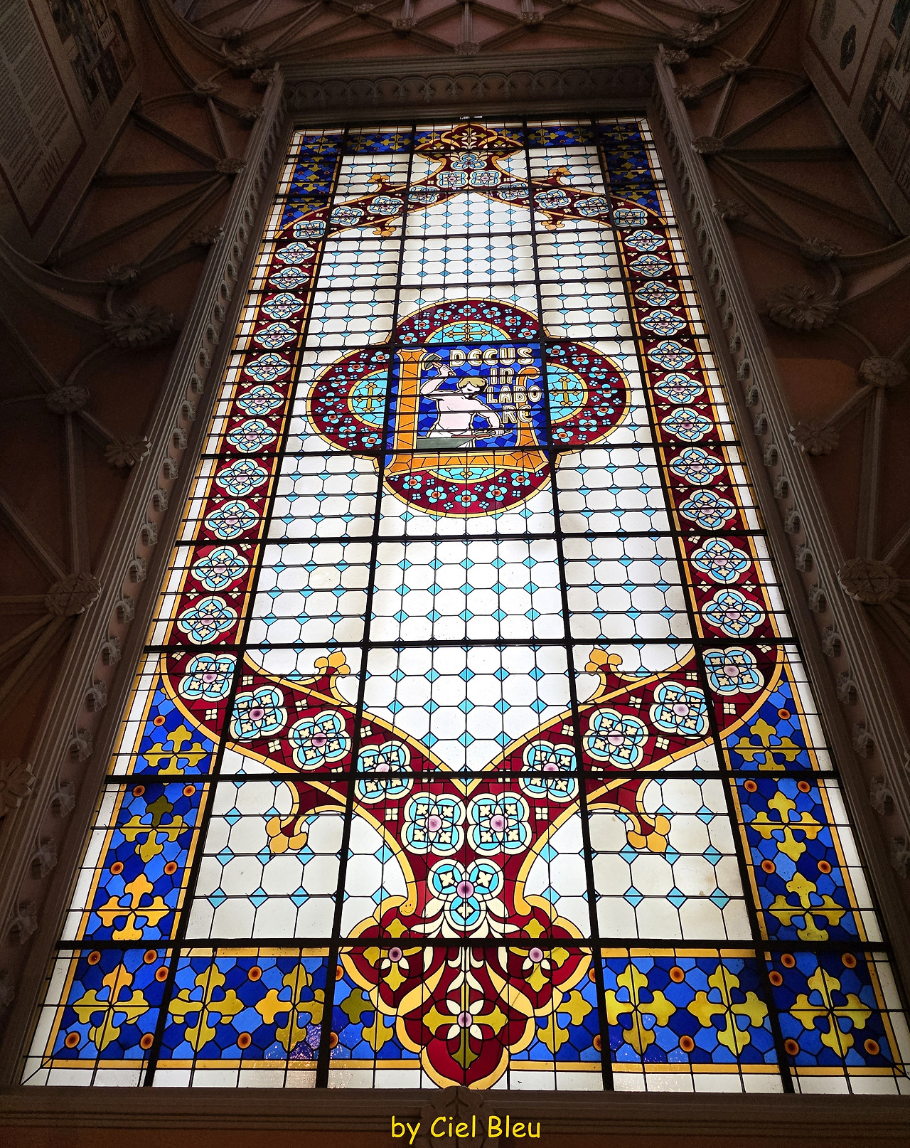 길이 8m, 폭 3.5m의 대형 스테인드 글라스 중앙에는 서점의 모토인