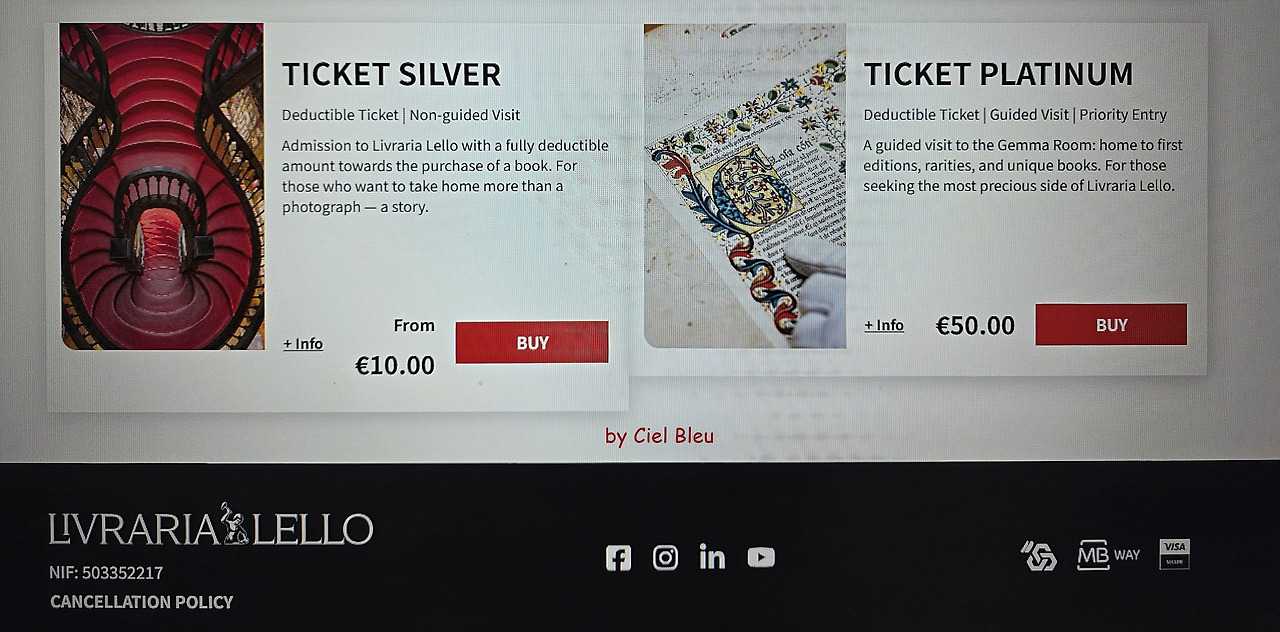 그런데 서점 입구 'Lello & Irmão' 사인 바로 밑에 또 하나의 사인이 보인다.