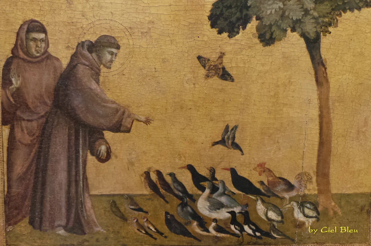 <성흔을 받는 성 프란체스코(Saint Francesco d’Assise Recevantles Stigmates)>, 조토,루브르주로 ‘성흔(Stigmata)’을 받는 모습으로 표현되는 로마 가톨릭 수도사다. 성 프란체스코의 성흔은 로마 가톨릭이 최초로 인정한 공식 성흔으로 유명하다. 프란체스코는 부유한 집안의 아들이었지만, 부의 허무함을 깨닫고 가난하게 살기를 자처했다고 한다. 그는 동물과도 소통할 수 있었다는데, 조토(Giotto di Bondone)의 작품 <성흔을 받는 성 프란체스코>가 루브르에 있다. 조토는 르네상스의 문을 연 화가로 알려져 있는데 나는 이 그림에서 오른쪽 아랫부분, 성 프란체스코 뒤에 서 있는 수도승의 표정이 무척 마음에 든다. 새들과 대화를 나누는 성 프란체스코를 이해 못 하겠다는 듯한 표정으로 쳐다보는 그의 모습이 왜 그리 시선을 끄는지.